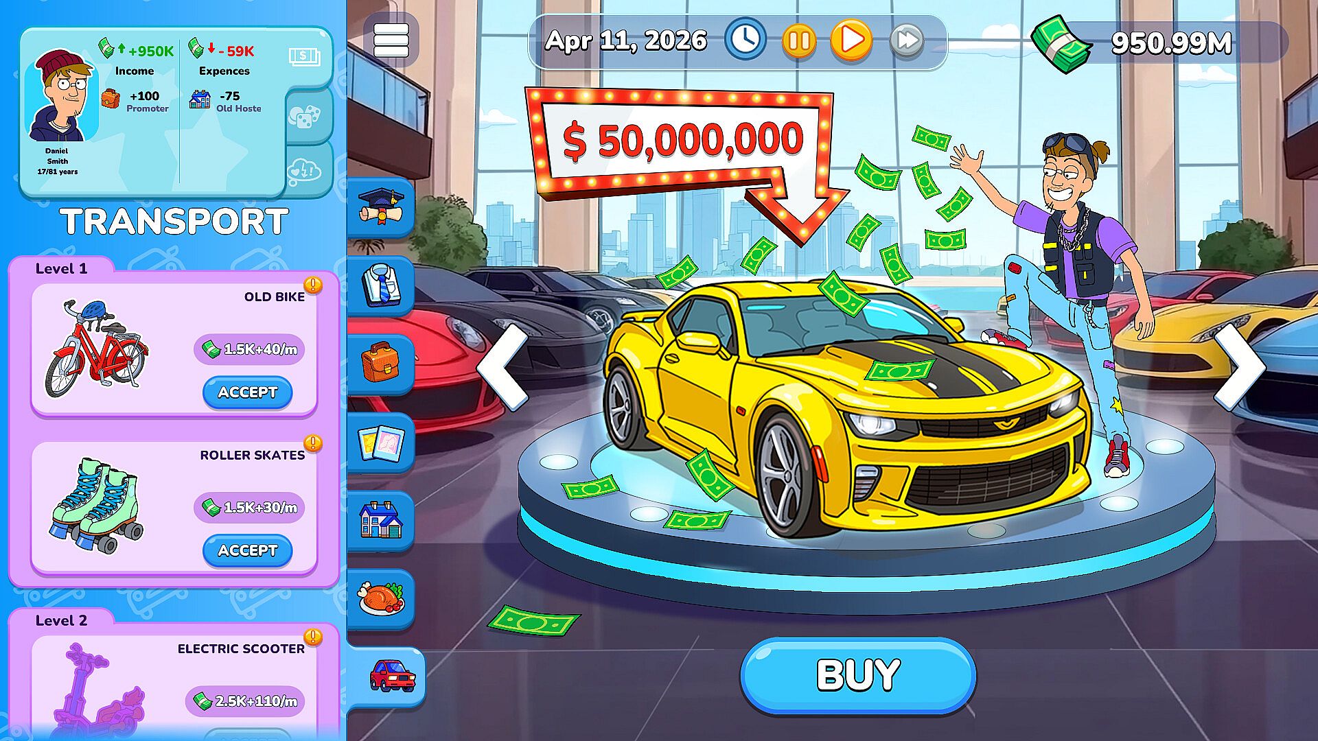In this idle simulator, wealth isn’t the only thing that matters. Find your perfect match, build a relationship, and start a family. Will you settle down or keep searching for the one? Love is just as important as money in Mr. Billion, and your decisions will shape your life.‍❤️‍