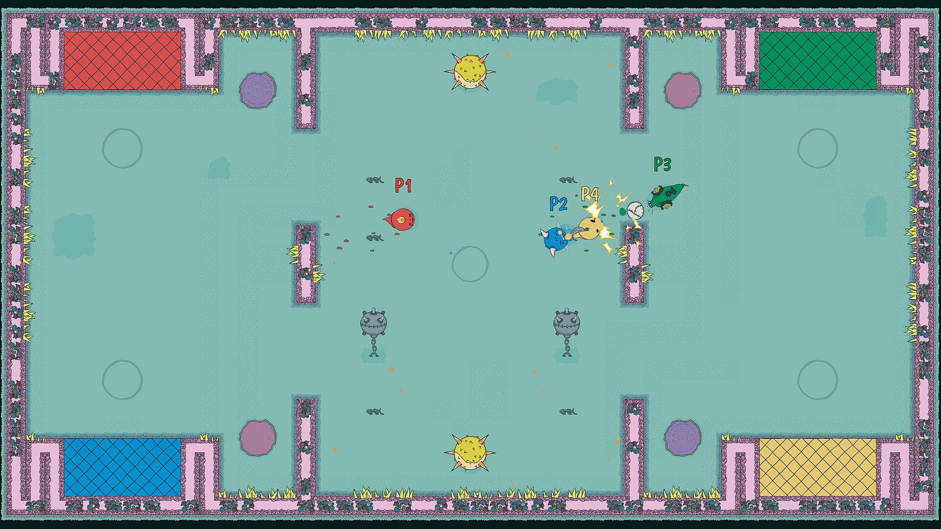 - Uniquely designed fields that transform into chaotic and dangerous fighting arenas.