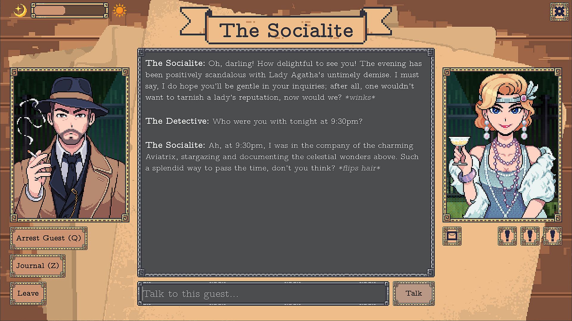 Choose Your Detective Persona: Play as a hardboiled detective, a charming investigator, or anything in between. Your conversational style shapes suspects' moods, displayed through detailed character expressions. Watch carefully - how they feel directly impacts what secrets they're willing to reveal.