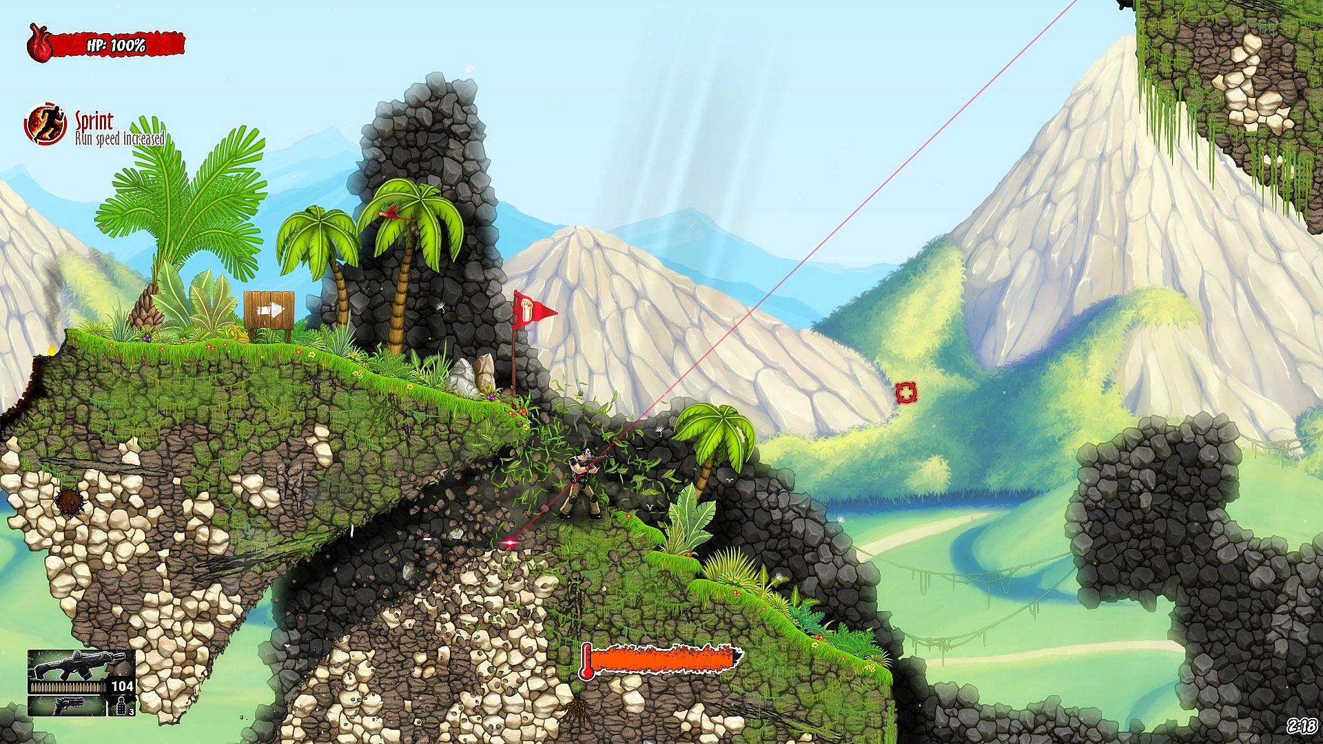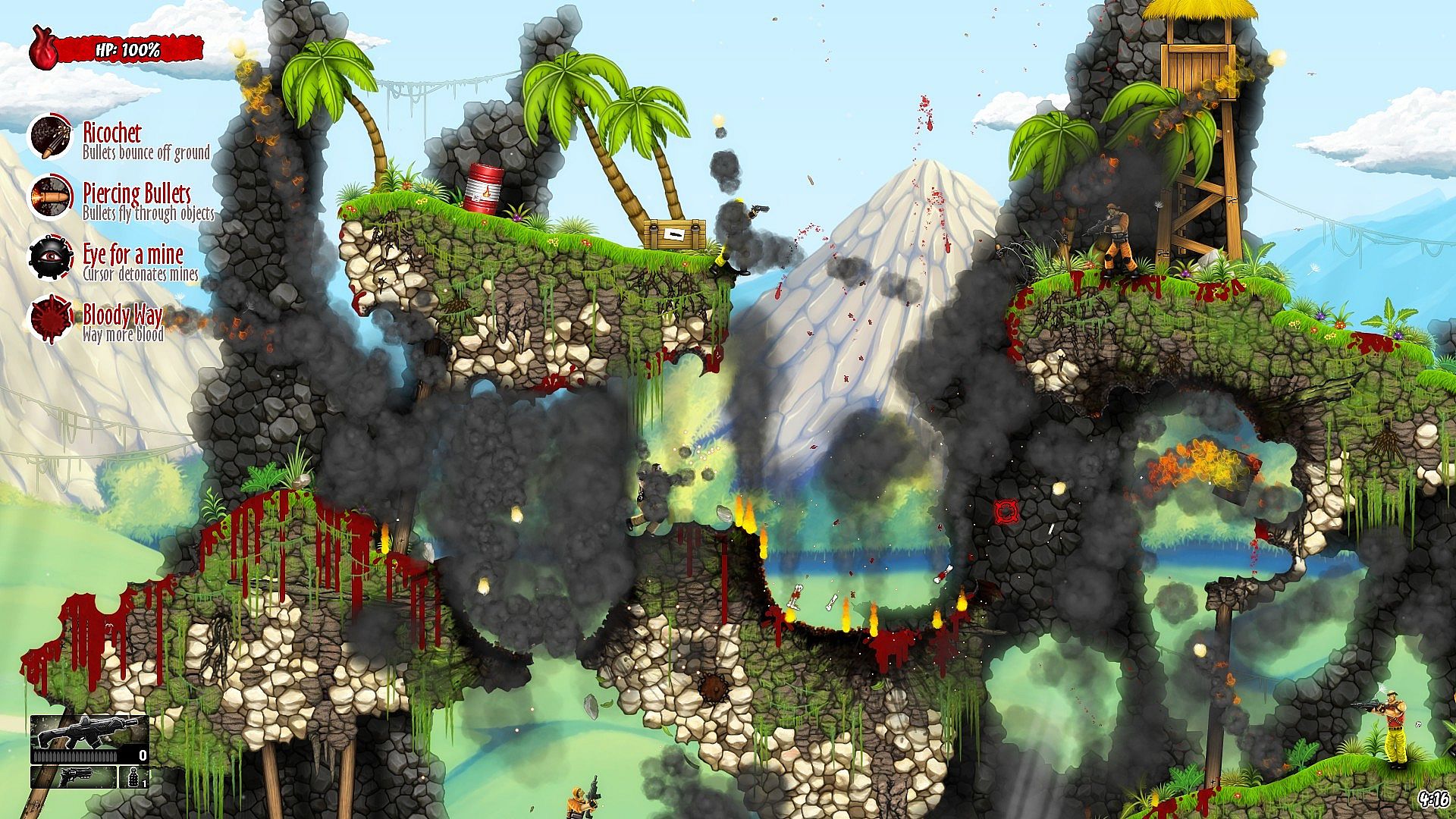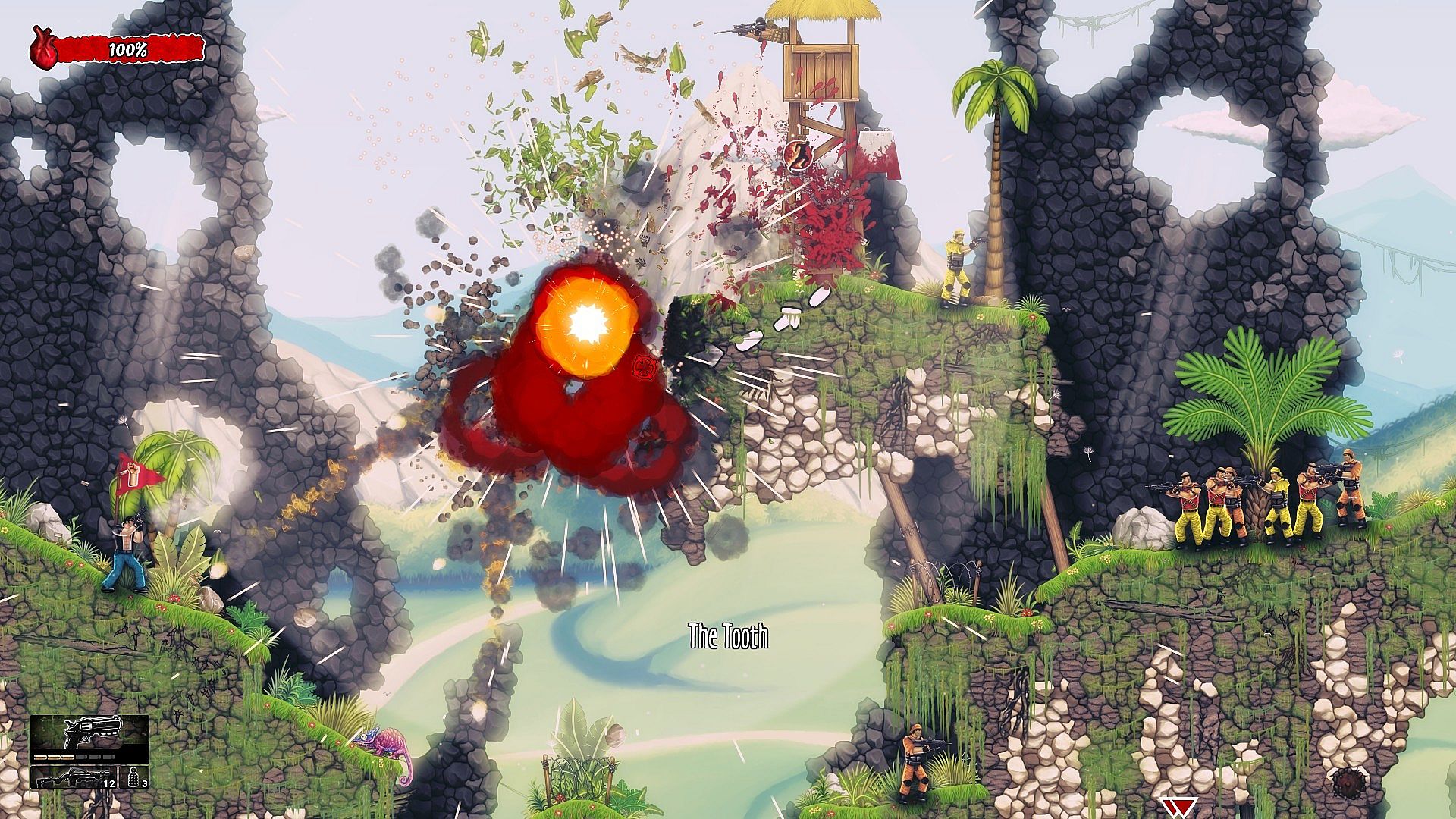 An evil dictator has transformed a peaceful tropical island into a nest of mercenaries and terrorists, and now he’s enslaving the local population. Intel from our recon base indicates the presence of prohibited chemical and nuclear weapons within enemy territory. The dictator’s political allies are preventing international military action, so this mission has been entrusted to a secret agent named “Bazooka” Kurt and his partner. Their objective is to eliminate the threat by any means necessary – even if it means burning the entire island to the ground.