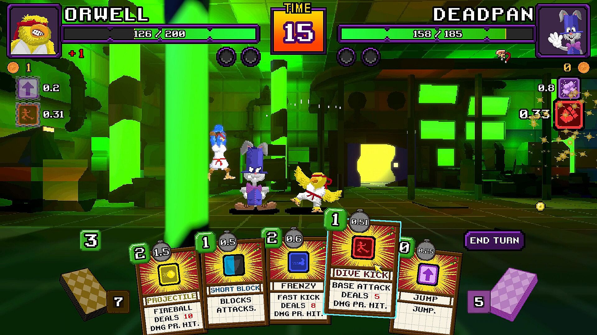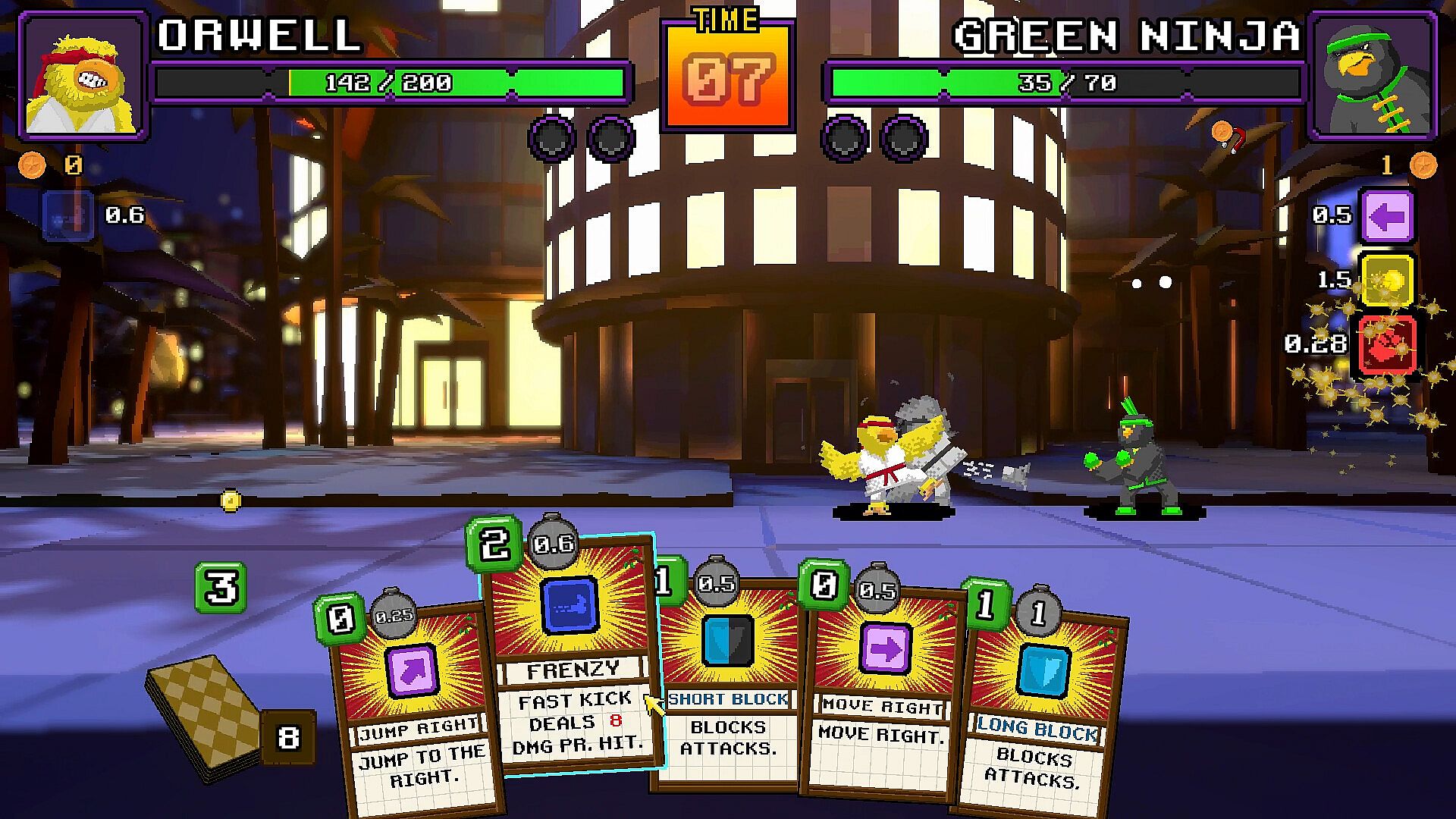 MKC blends 80s and 90s Saturday morning TV show characters with deck-building and turn-based 2d tactics in a classic 1vs1 fight game setting.