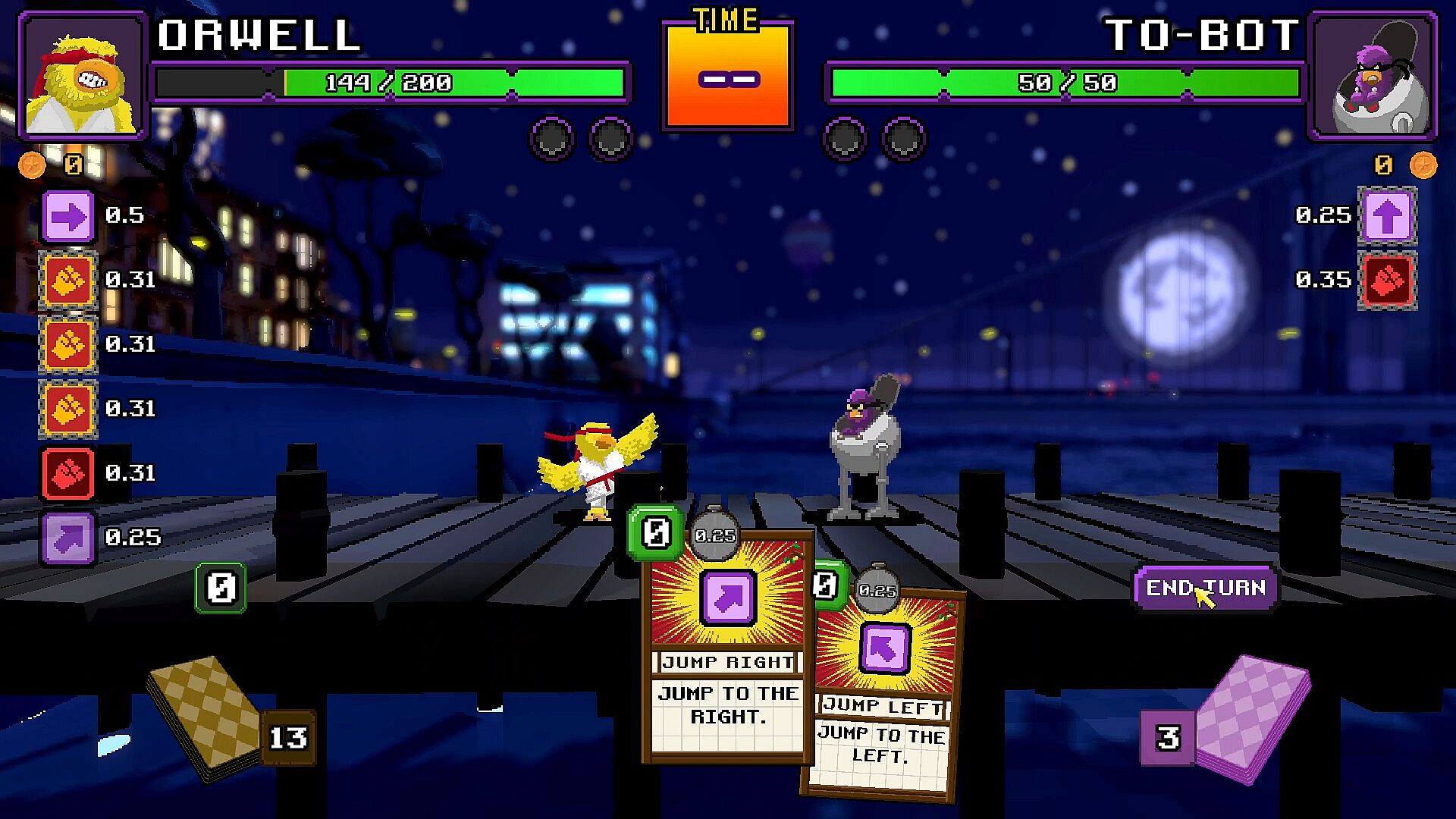 Play your cards, use your action points efficiently and position your fighter to overcome the odds and defeat your opponent.