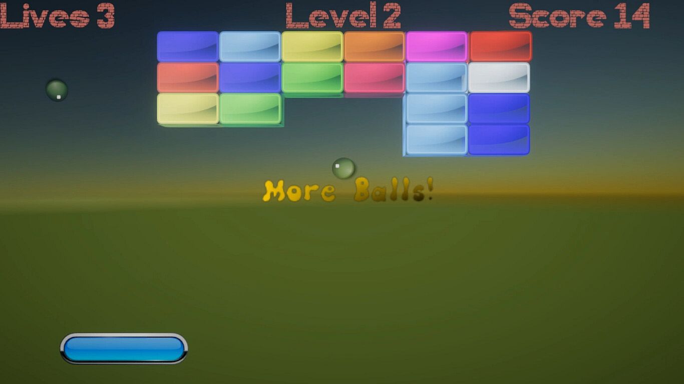 Not your typical breakout clone. The ball, paddle, and bricks are controlled by physics. Random power ups will fall from time to time which can affect gameplay. Points are gained by catching falling bricks with the paddle; avoid catching the skull and crossbones. Don't drop the ball!