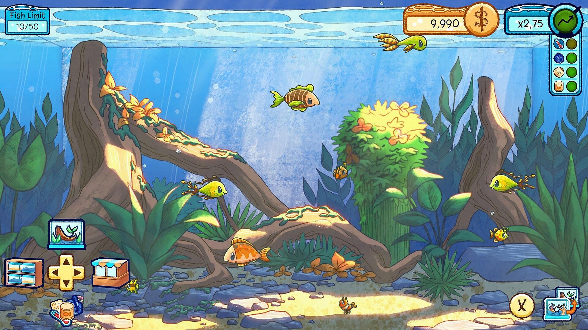 Enhance your aquariums with vibrant decorations and upgraded fish food, unlocking even more cozy, aesthetic possibilities.