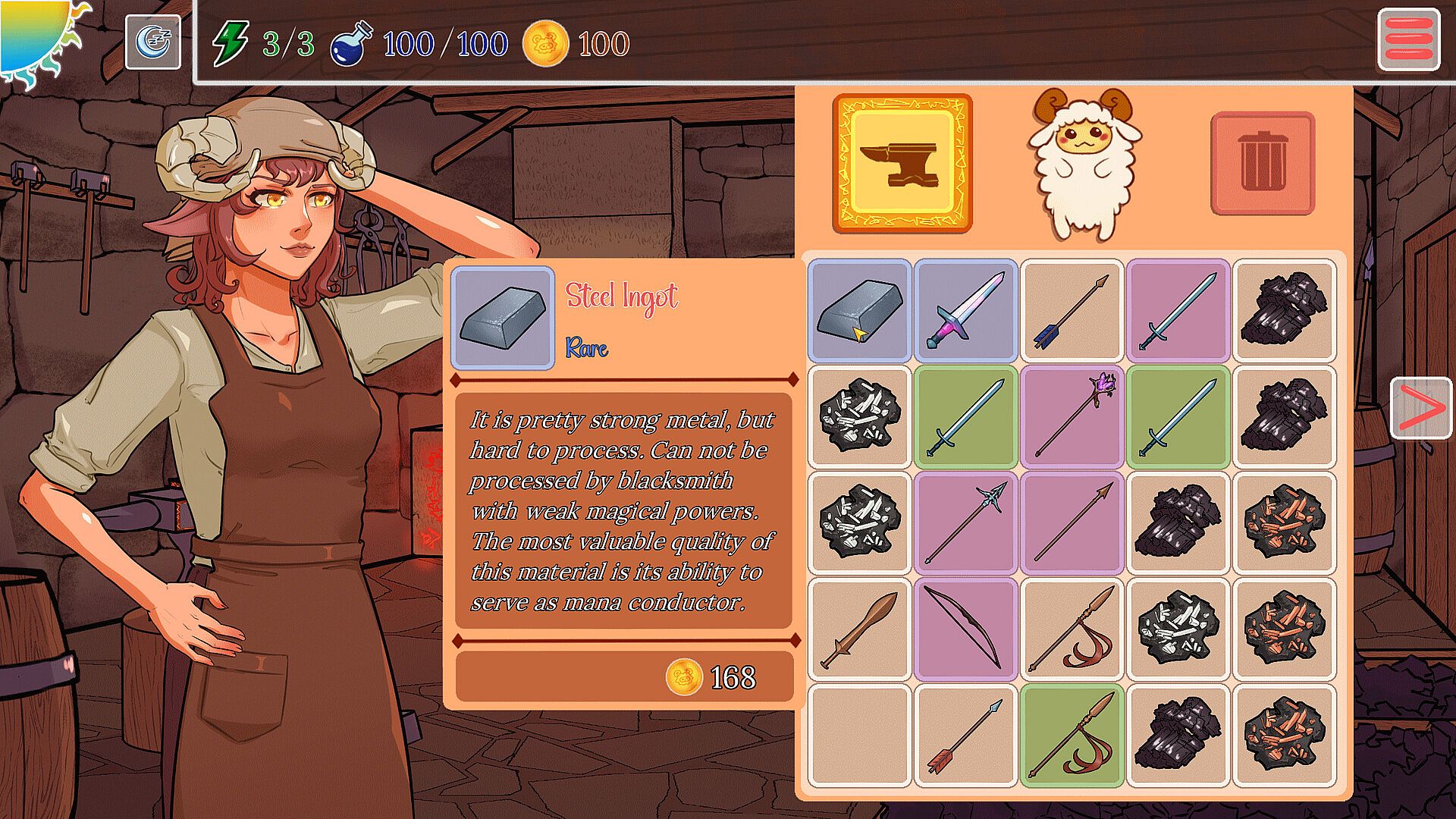 Take on the role of workshop manager!  Acquire materials in dungeons, remove impurities from ore to smelt high-quality ingots, and learn new recipes to craft weapons!