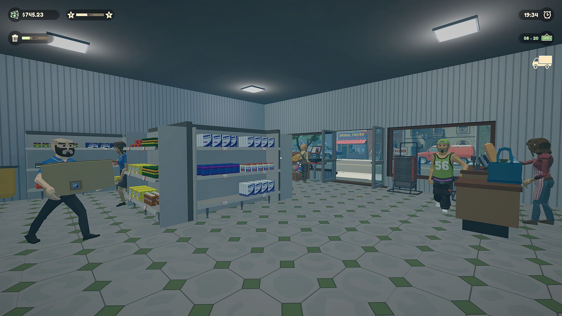 Order goods and place them on the shelves. Don’t forget to set the price and keep your stock up to date. Remember: the more happy customers you have, the more profit you earn!