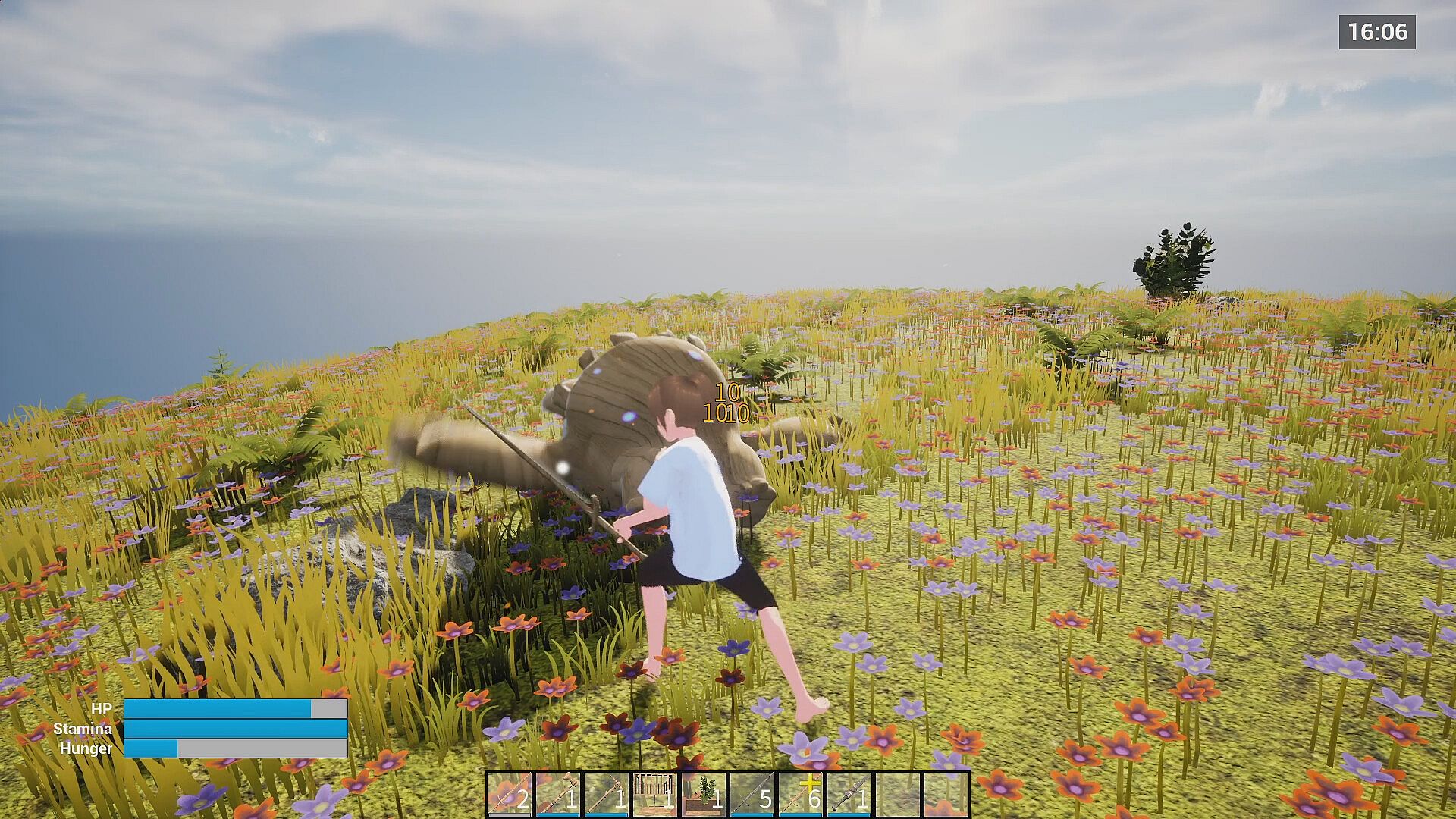 As a craft survival game, it includes my favorite elements, such as hunger management, cooking, resource gathering, hunting, tool and weapon crafting, and base building.