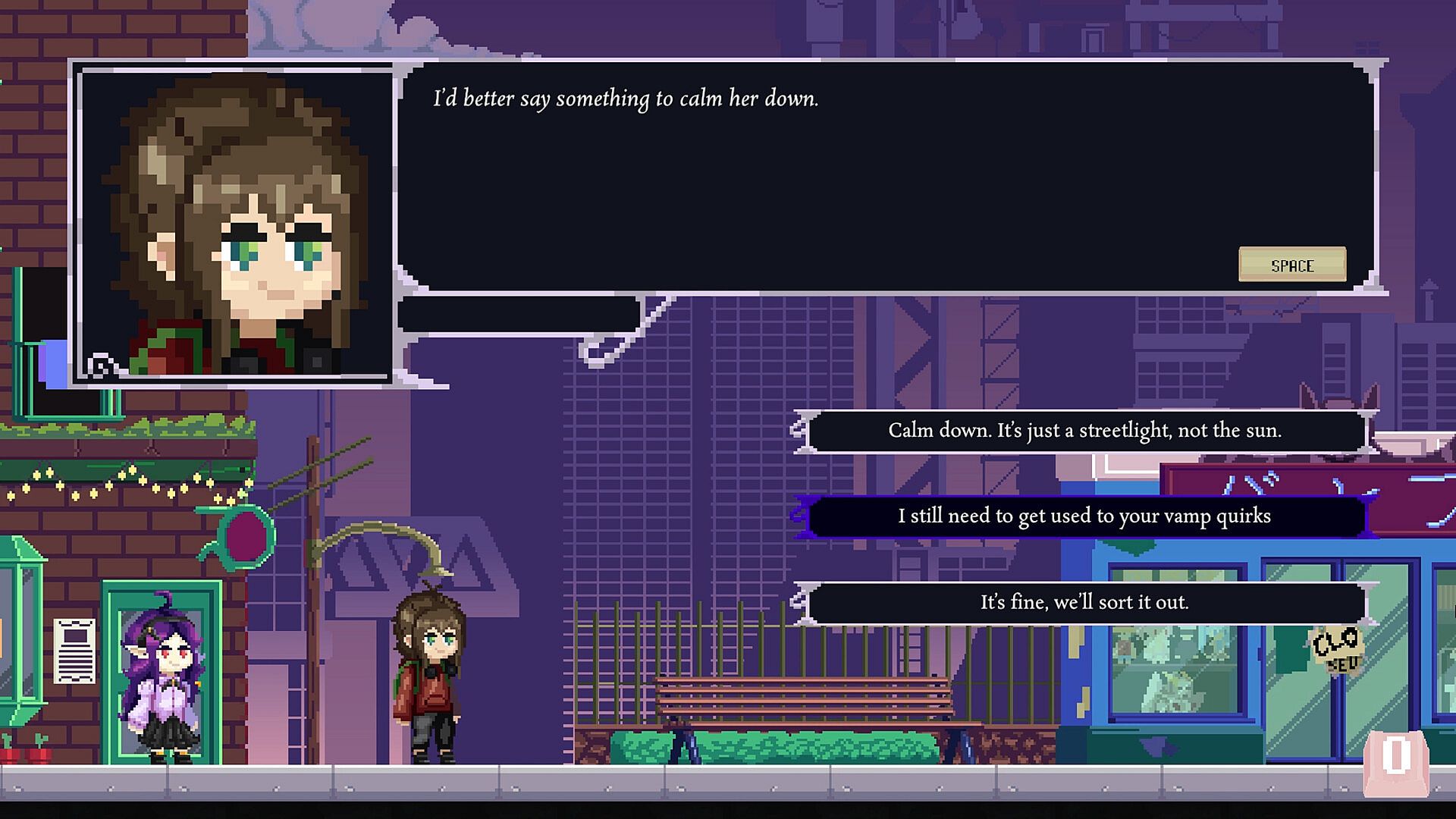 My Girlfriend is a V.A.M.P. — Vampire Autistic Magic Princess is a narrative-driven adventure game in which you guide your girlfriend through dangerous environments and everyday situations to bring her back to her castle.