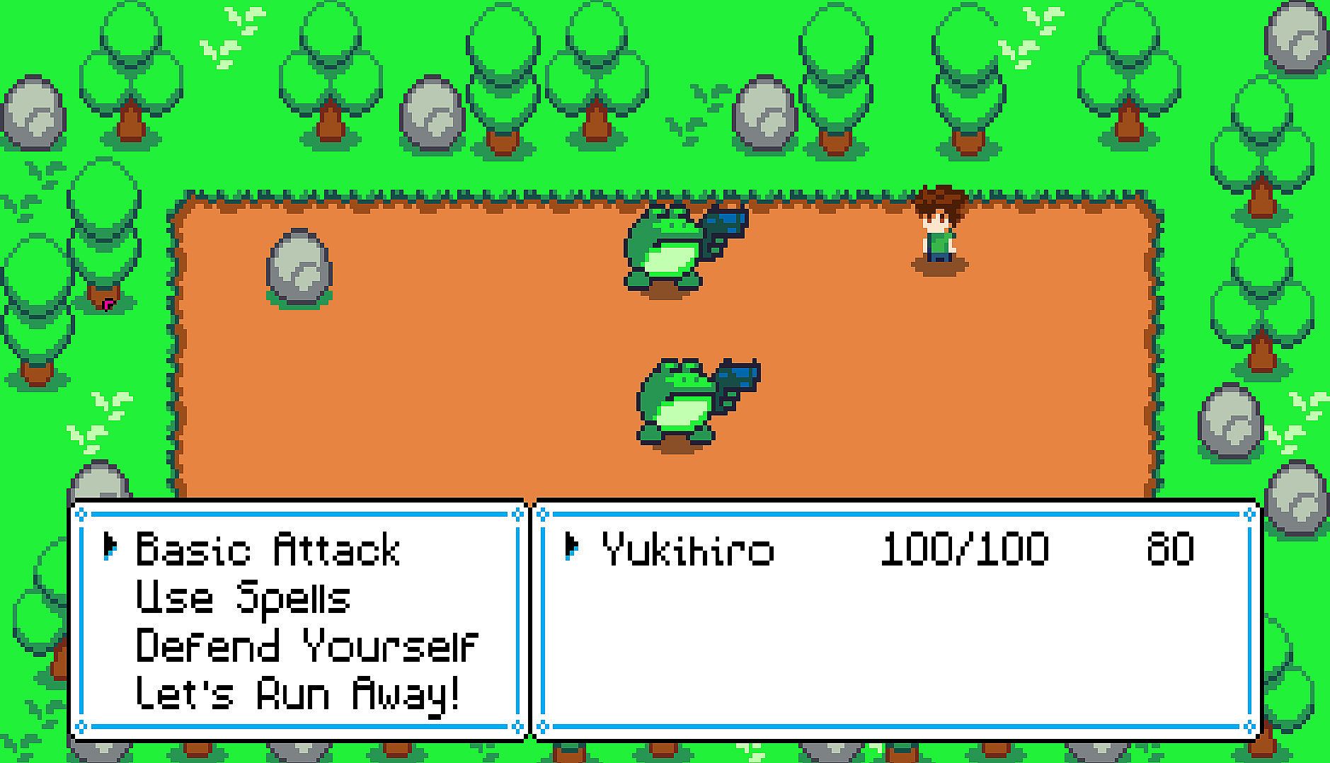 RPG style turn based combat against multiple unique enemy's, including a gun-wielding frog, watch out!