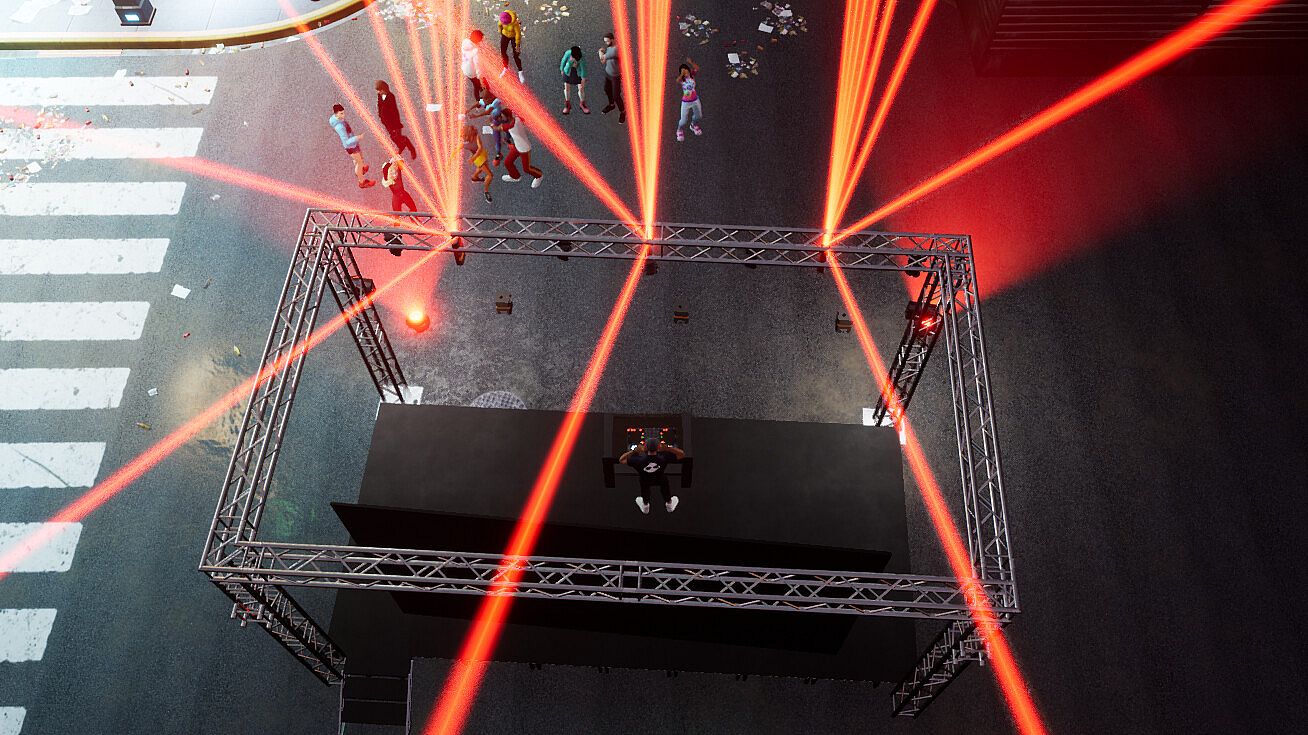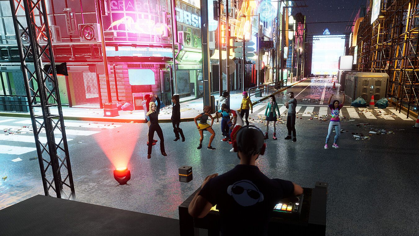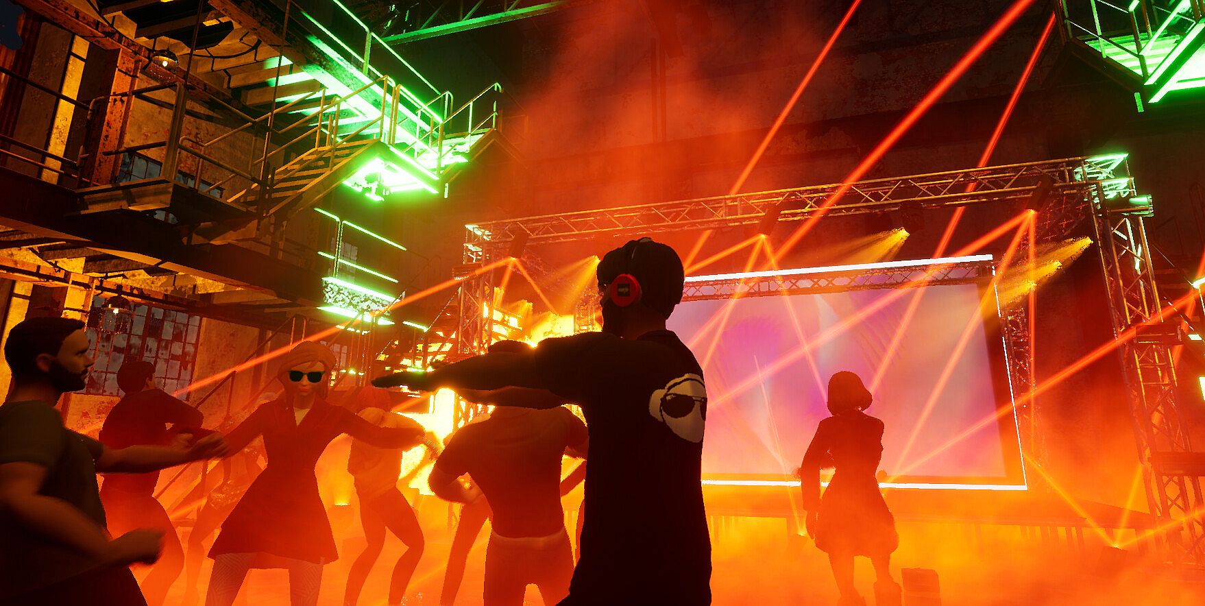 Step into the role of a musician or DJ in this indie casual Early Access game on PC. Customize over 20 starter clubs, host events with DMX DJ lighting, and stream live or recorded music from Twitch, YouTube, or your desktop audio. Collaborate with Steam friends and fans using voice and text chat while exploring music genres, production techniques, and beat-reactive visual effects. Play beat games at dance events, create new dance moves, and record machinima music videos with in-game camera tools. Promoters build venues, invite DJs and musicians, and establish virtual labels. Creative 3D modelers add their own graphics in edit mode, drawing in music fans, ravers, and aspiring show producers.