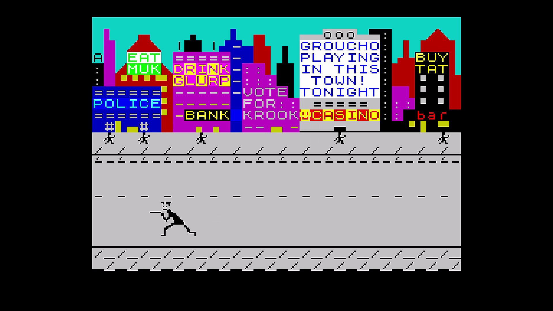 Uncle Groucho is your guide in a wacky alternative Hollywood where cigars are currency and you are as likely to travel in a space shuttle as in a covered wagon. Designed in 1983 by Mel Croucher, the British videogame pioneer, this bizarre graphically-augmented text-adventure for the ZX Spectrum showcased Mel's unique brand of humour. Now, relive those days in this remastered emulated version.