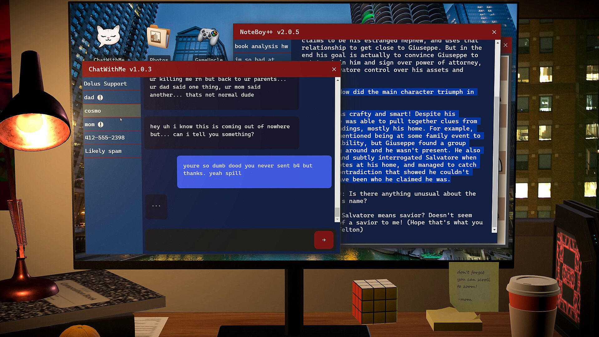 This is a game that rewards creativity and curiosity in your conversation. There aren’t misleading dialogue options or boring locked-in paths. In My New Computer, nothing stops you from: