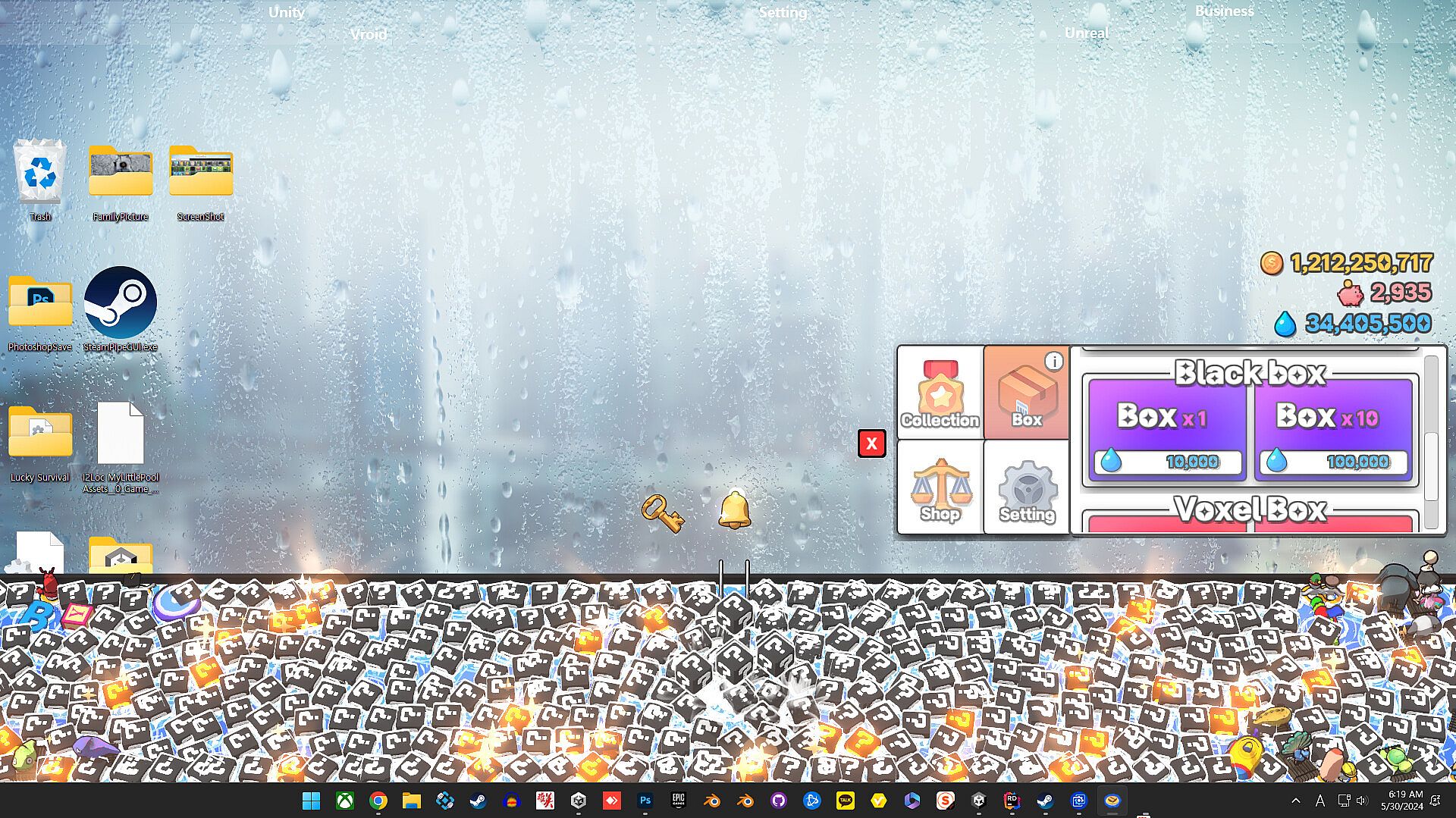 Touch the pool to collect water droplets to purchase boxes and open them to complete the collection in the pool.