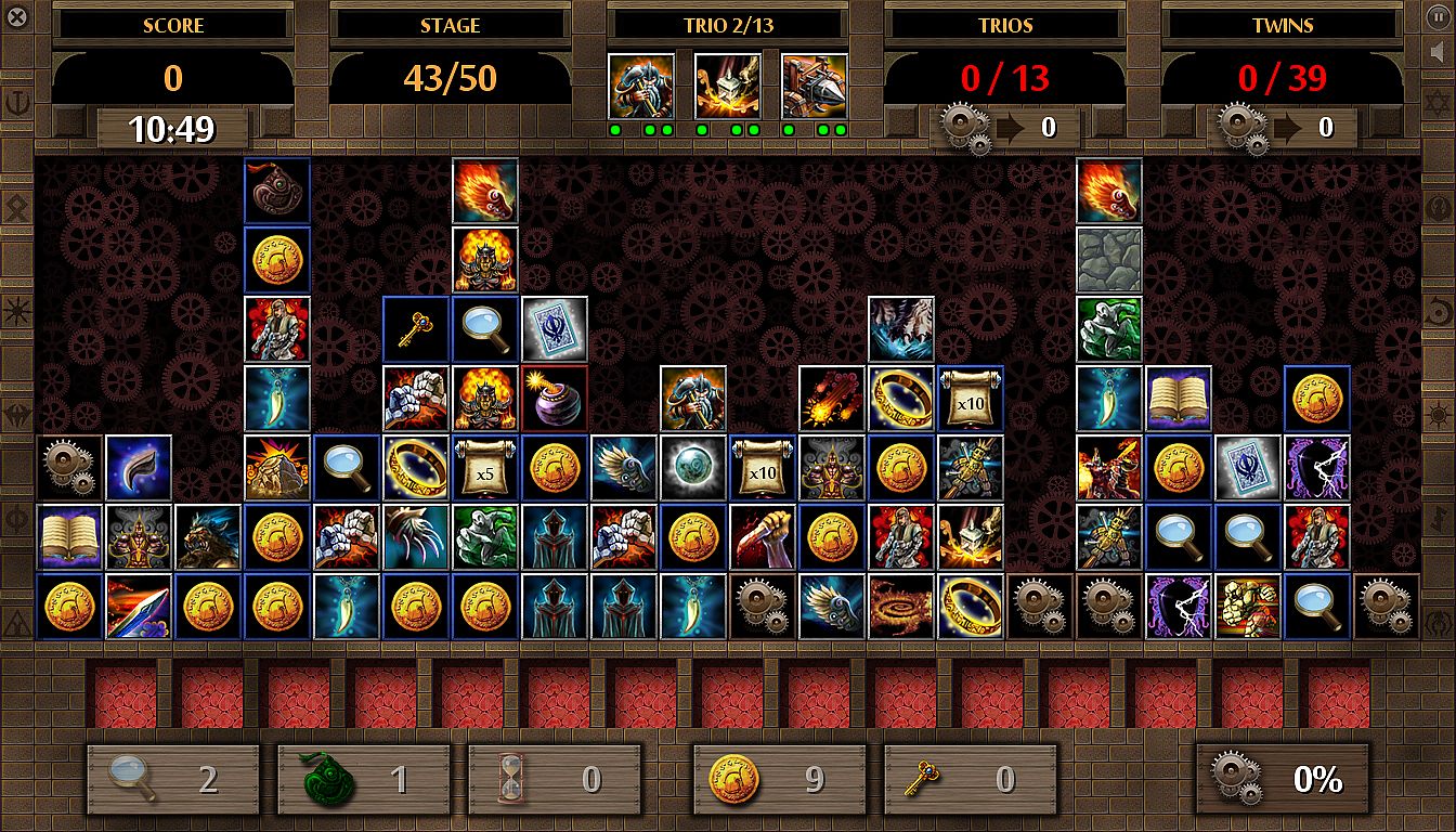 In Mystical, you must perform each trio and each twin within the time limit to win. A trio is a family of 3 items. A twin is the same item twice. Then for each trio, you have 3 twins.