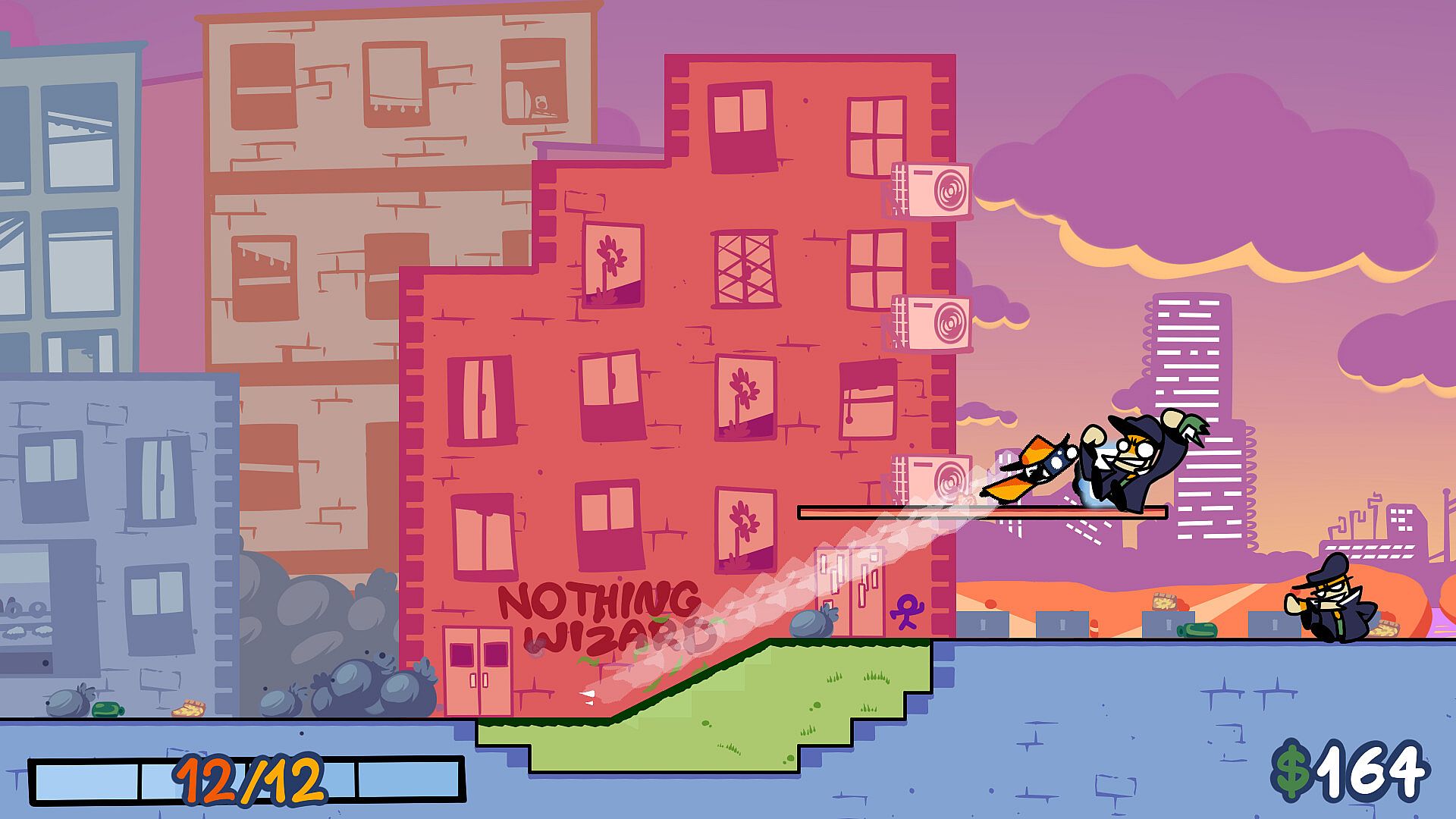 The Gameplay is an ideal synergy of Platforming and Combat. A Ridiculous movement system where dashing into slopes launches you in the air, yet somehow works hand in hand with the camera-based combat! (You can also buy infinite salad, but that's not as noteworthy)