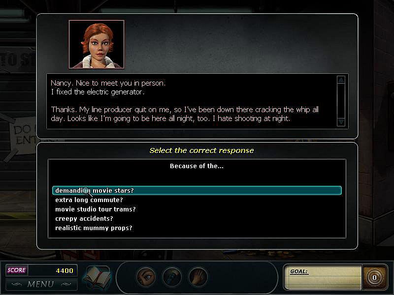 From the creators of the #1 selling-PC adventure games comes a new Nancy Drew story-driven casual series that is Fast Fun for Busy Detectives™. You, as Nancy Drew, are on the set of a controversial remake of the famous 1930's film “Pharaoh!” The studio original movie released with an alternate ending due to the untimely death of Lois Manson, the film's star, and became a box office smash. Now, Nancy Drew is undercover on the set to get to the bottom of suspicious press leaks and uncanny accidents that have the production schedule in jeopardy. Is someone trying to sabotage the movie or is it a curse of the fallen film star? Seek the source of sabotage on cursed Hollywood set!