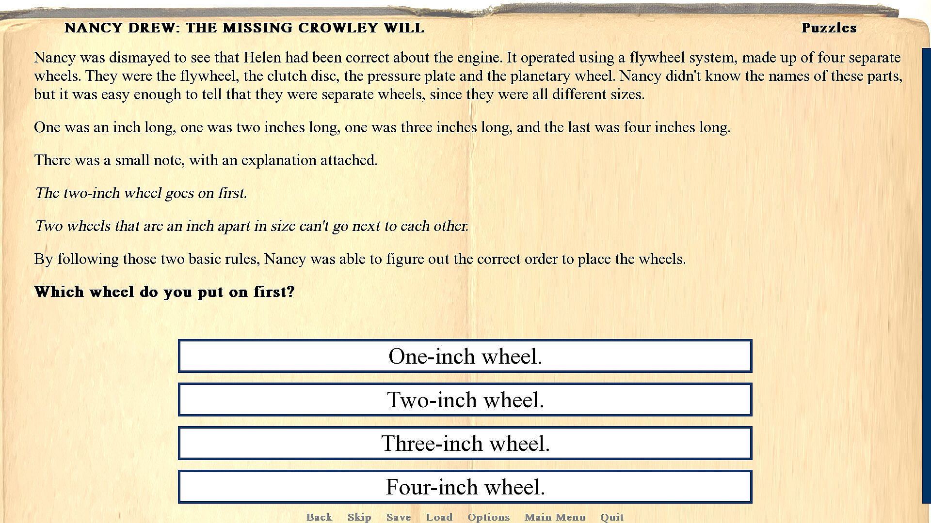 This game is based on the 1930 public domain edition of The Secret of the Old Clock. It is an independent adaptation and is not affiliated with or endorsed by Simon and Schuster, Her Interactive or any other current rights holders of Nancy Drew.