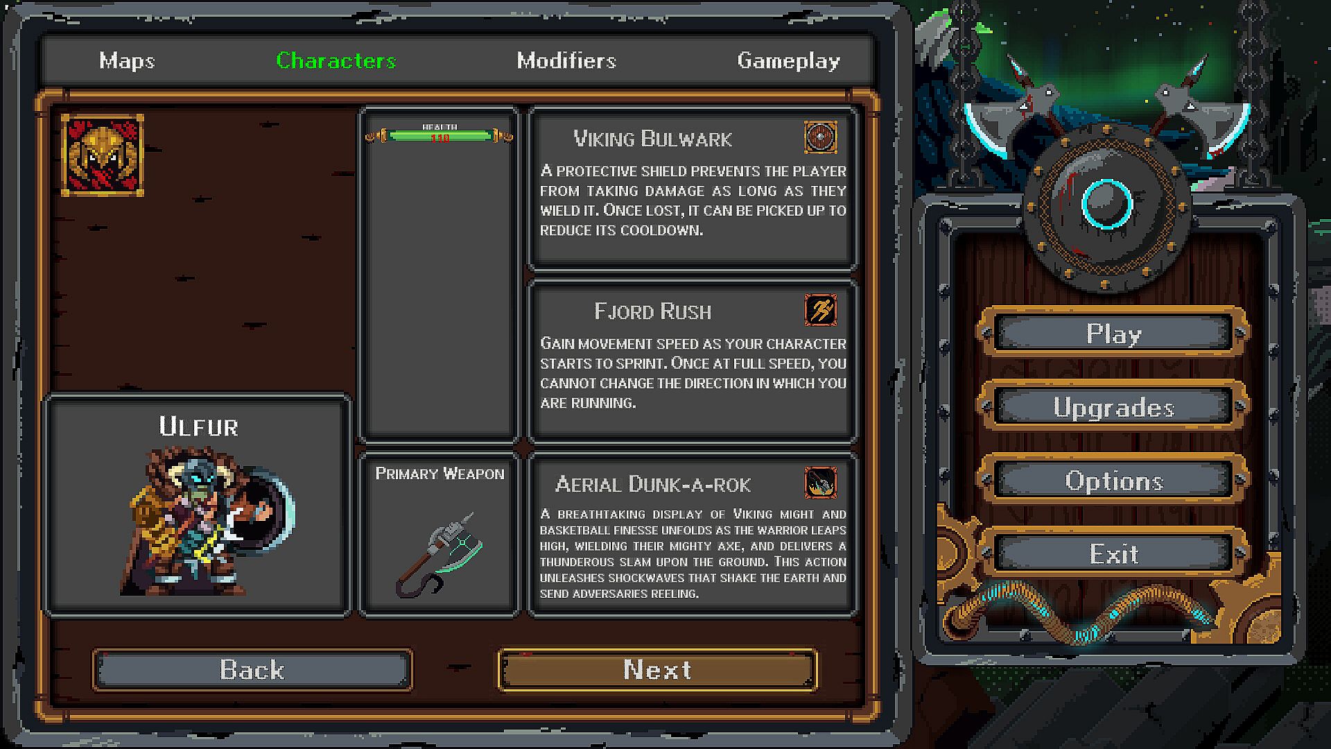 Characters have different skill trees and permanent power ups can be unlocked after each run. Finding the right item builds and power up combination is the only way of getting through the story and difficulty levels, unveiling more of the world of Myrkrafjordur to explore with every run!