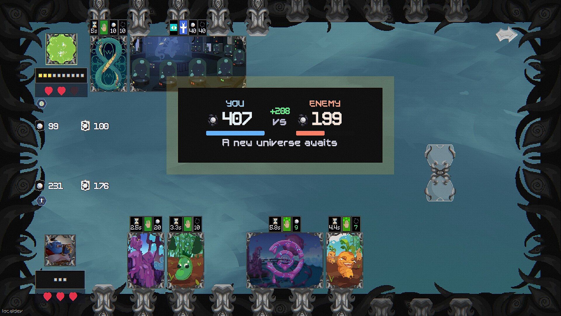 Battle against snapshots of real players from around the world. No waiting for matchmaking. No time pressure. Just you, your aliens, and their harvesting prowess against builds other players have crafted.