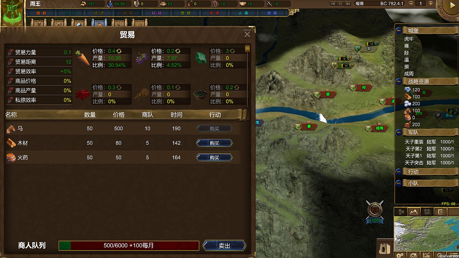 • Trading system: Players can monopolize resources, buy and sell strategic resources, and send merchants to trade activities, providing strong support for the country's economic development.