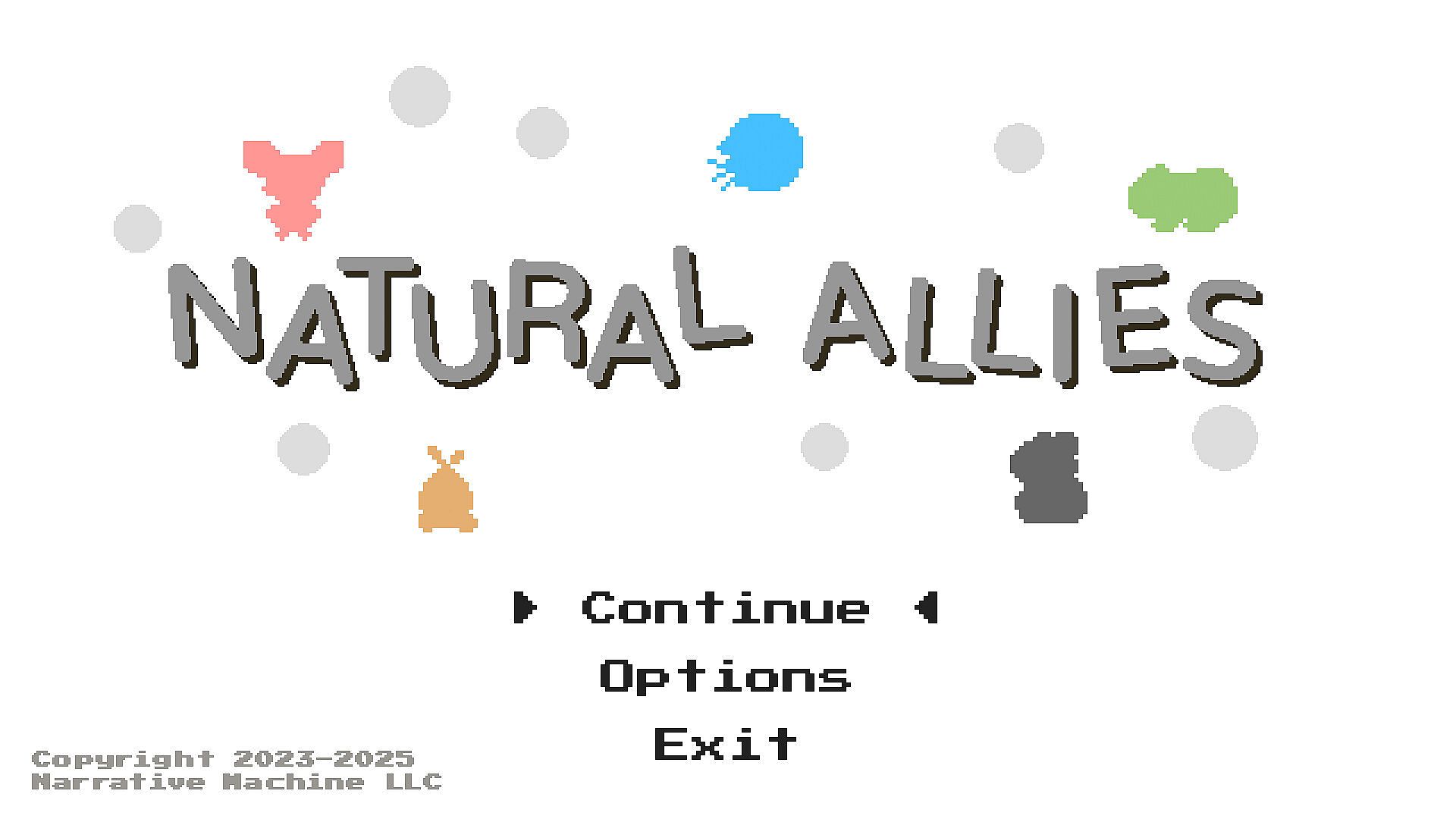 Natural Allies is a 2D platform game inspired by the 8-bit era. Team up with a variety of animal buddies to stop an ancient evil from taking over!