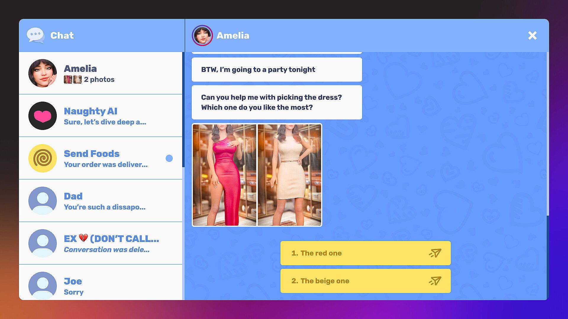 - Flirt with Amelia who will respond to your requests