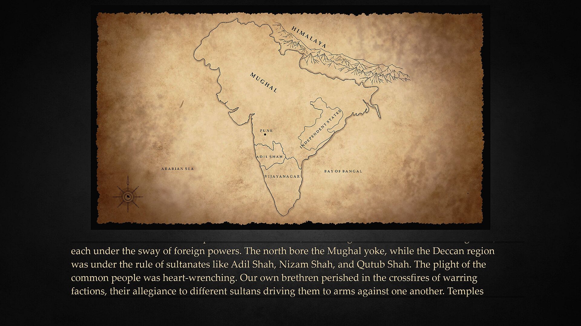 Explore culturally rich environments from historic India, traversing through forts and regions influenced by various sultanates, as well as British and Dutch colonies. Immerse yourself in the historical and vibrant settings that shape this epic adventure.