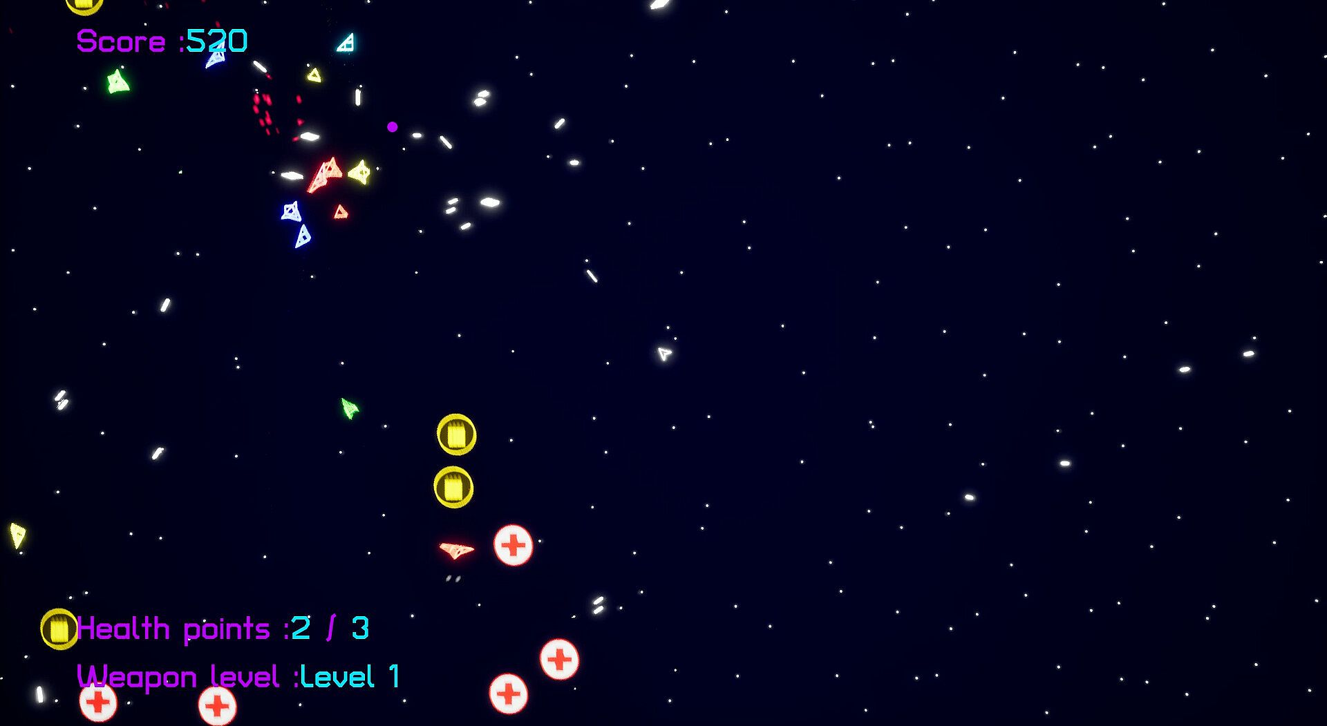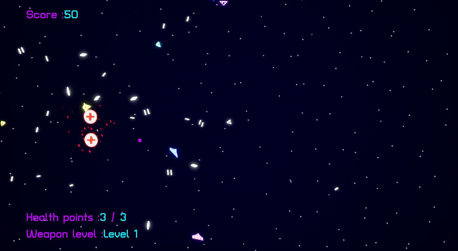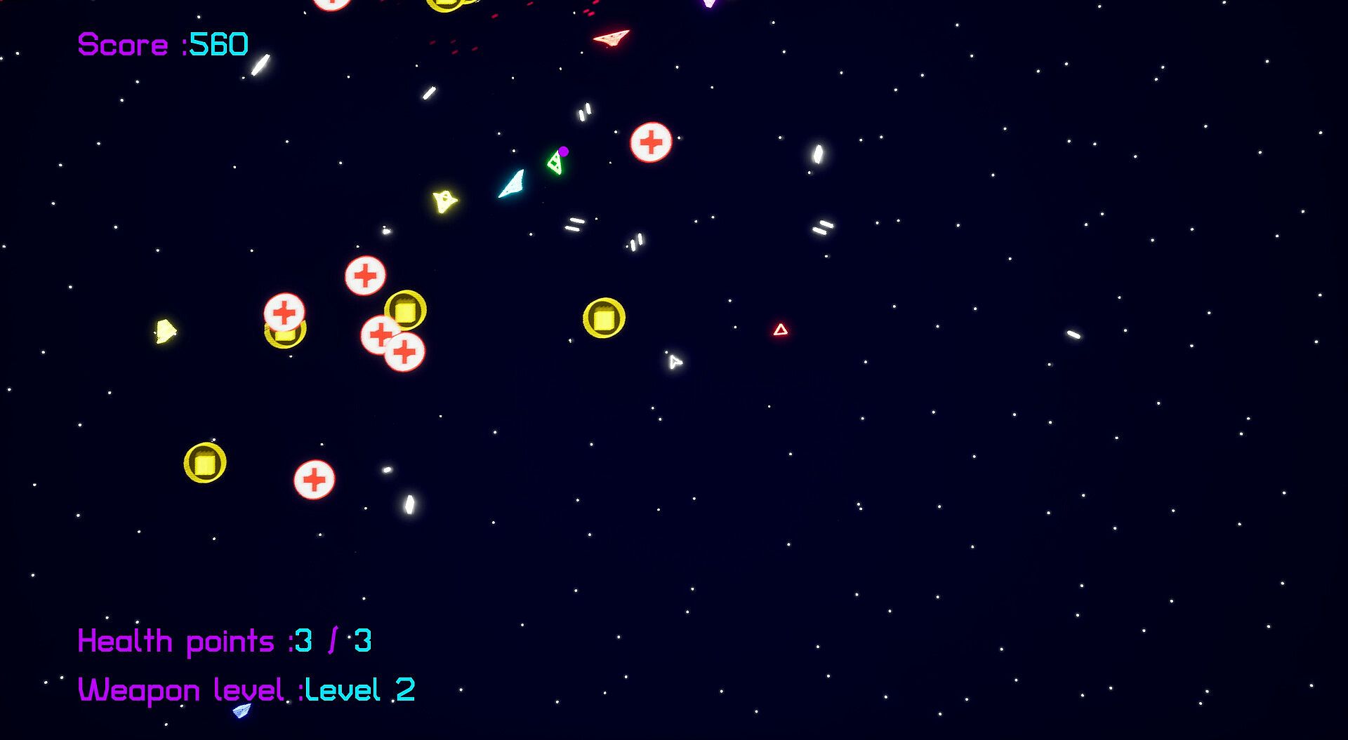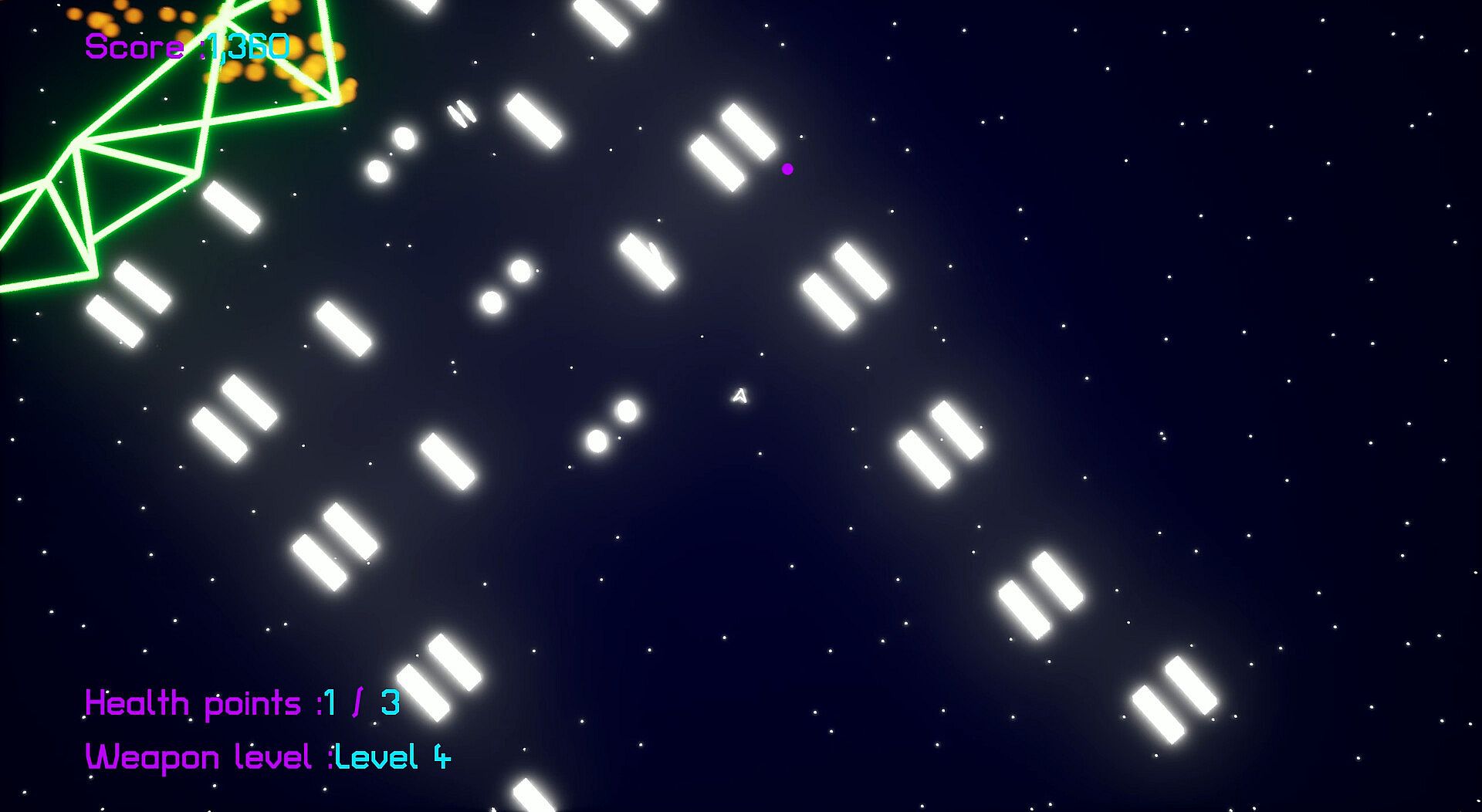 Destroy invaders to collect bonuses, upgrade your weapons, and challenge powerful bosses whose defeat will grant you even greater ship enhancements. No story, no mercy—just you, your reflexes, and a dazzling neon storm in the endless void.