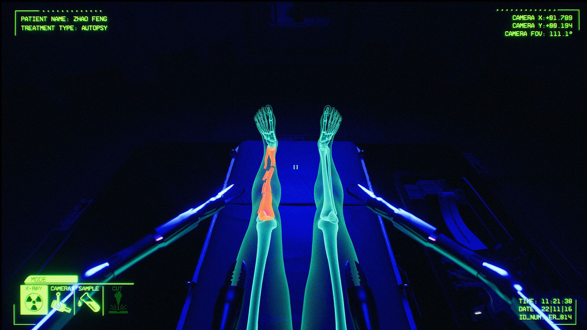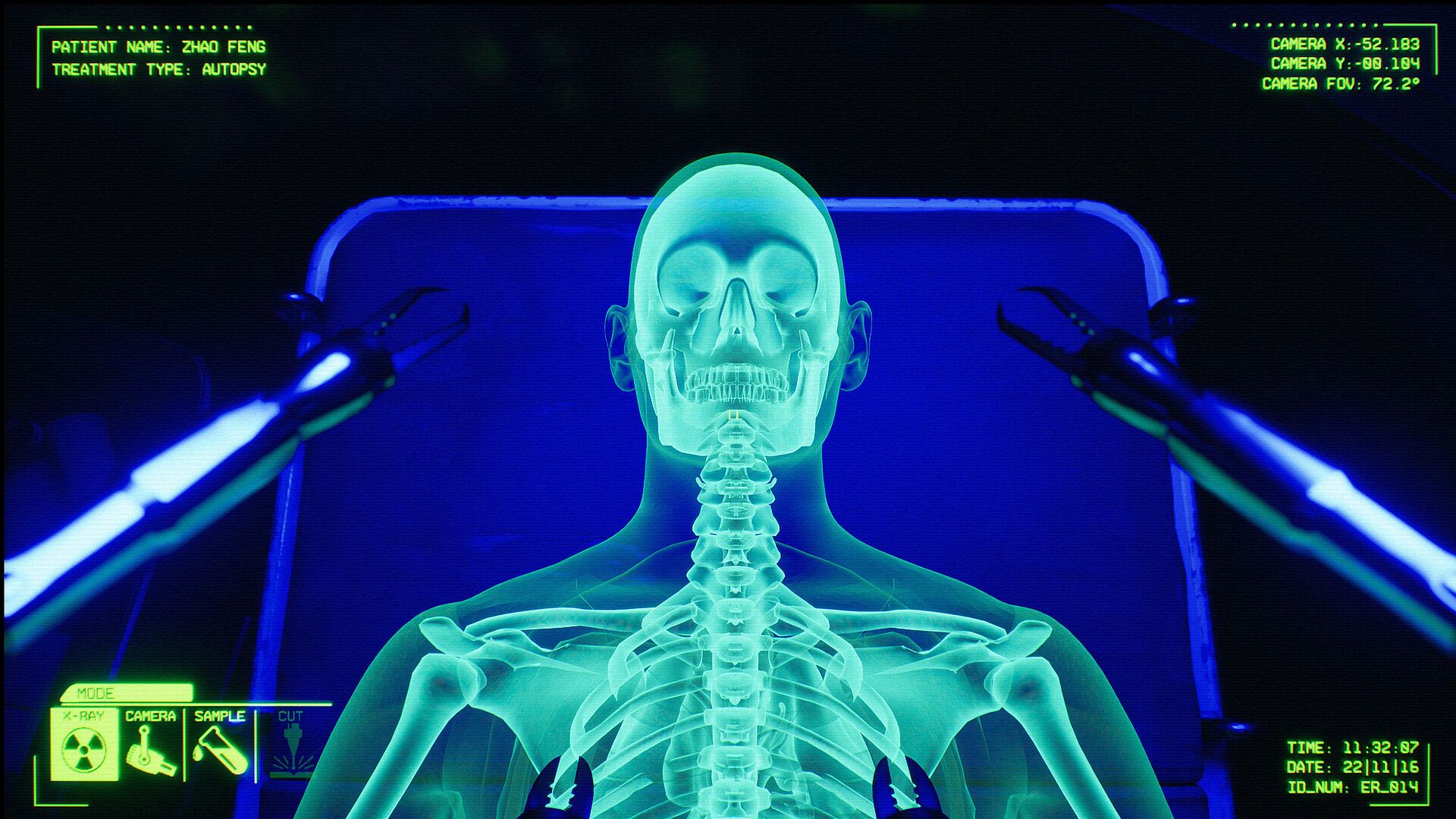 In this prototype, you control the S.P.I.D.E.R. (Surgical, Procedure, Intervention, Diagnostic, Emergency, Response) robot aboard the TRH Rusanov. You’ll perform two distinct operations: an autopsy on a cadaver to gather evidence and a surgical procedure on a pineapple.