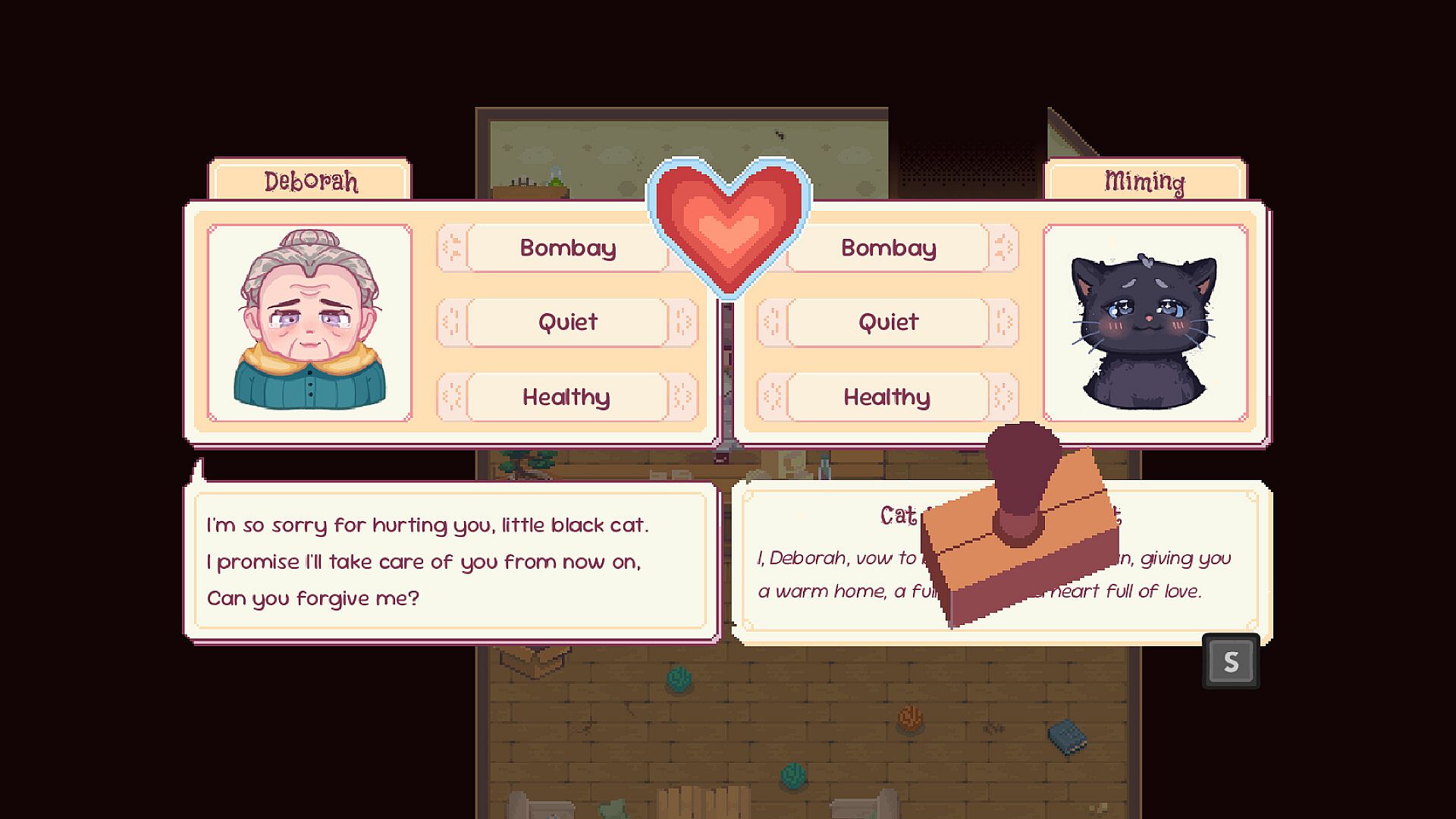 You’re Mikan, a no-nonsense cat running a struggling shelter with your human companion, Matsue. Rescue strays, match them with adopters, and keep the lights on without losing your morals. Every decision counts. Do you turn away a sick cat when you're low on funds? Or approve an adoption that doesn’t feel quite right?