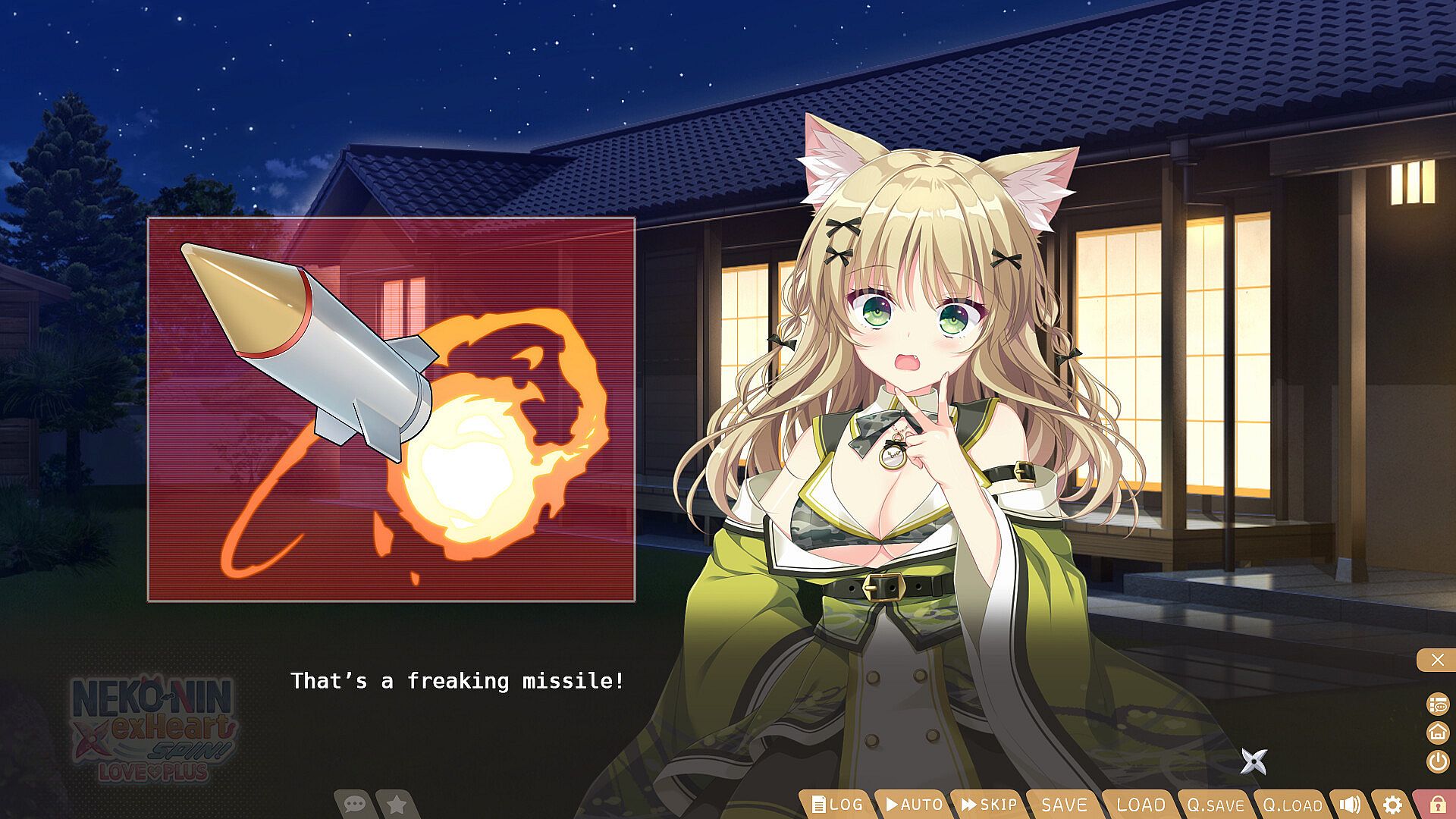 A fan disc featuring mini stories of the heroines from NEKO-NIN exHeart SPIN! While it is not required to own NEKO-NIN exHeart SPIN! to play NEKO-NIN exHeart SPIN! LOVE+PLUS, it is recommended to clear the original to enjoy the full experience.