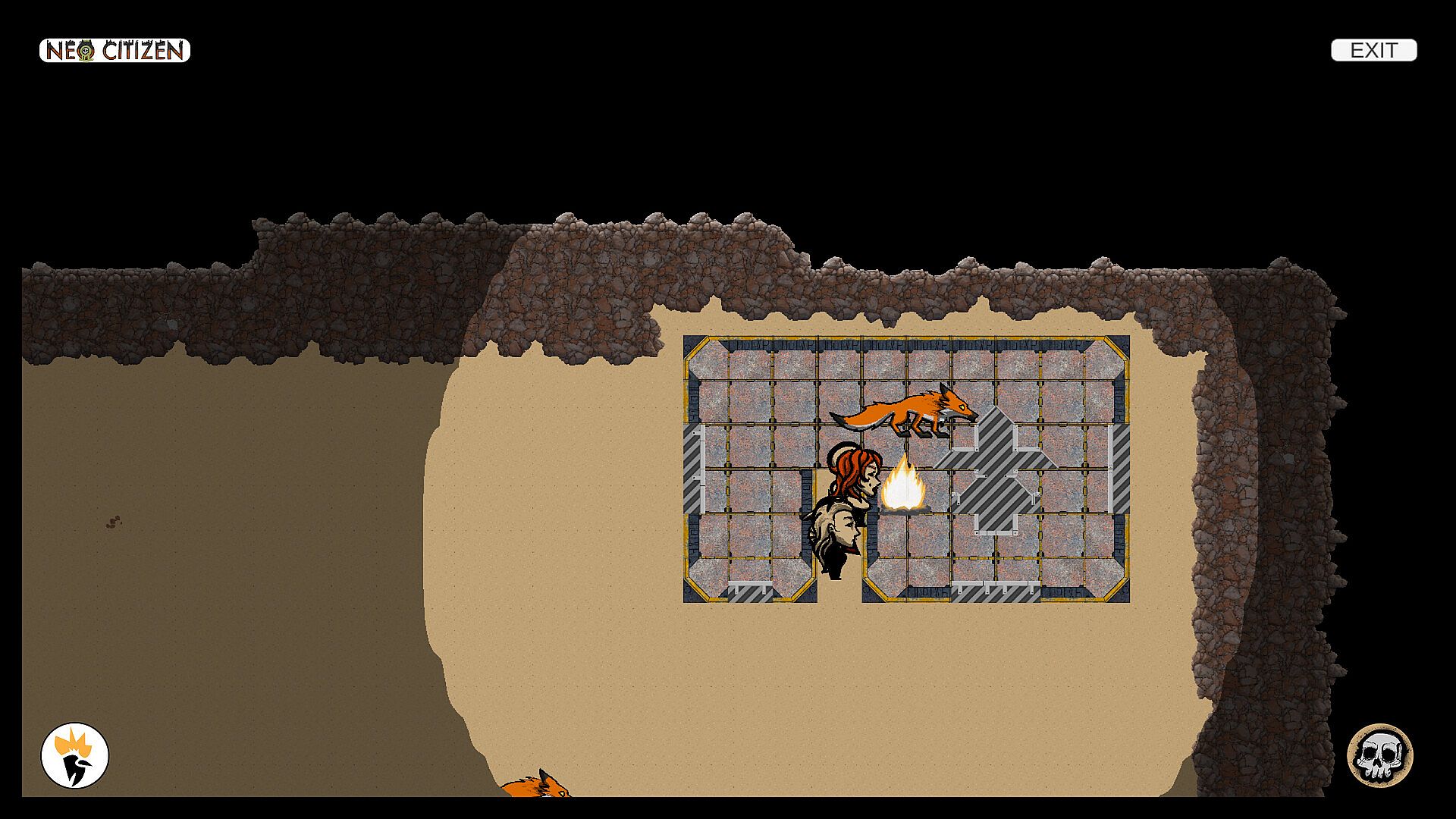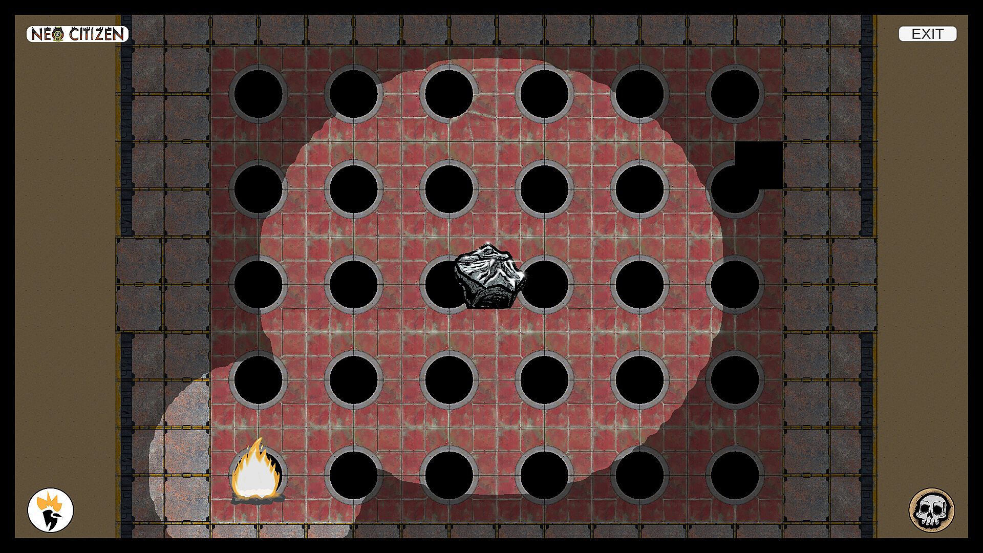- Explore rooms and find resources, while avoiding dangers