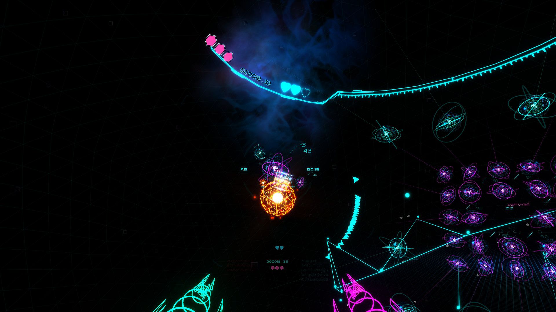 You control an ion cannon in a 360Āŗ gravitationally affected environment, firing positive and negative ions using left & right triggers at incoming neon isotopes of varying āchargeā to eliminate them.