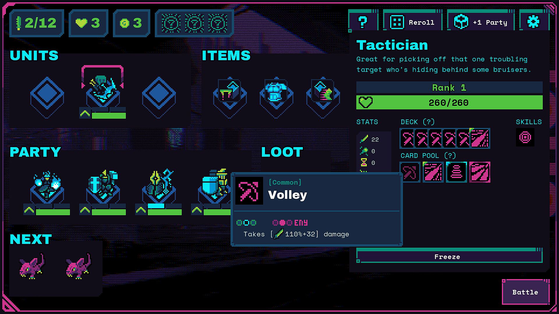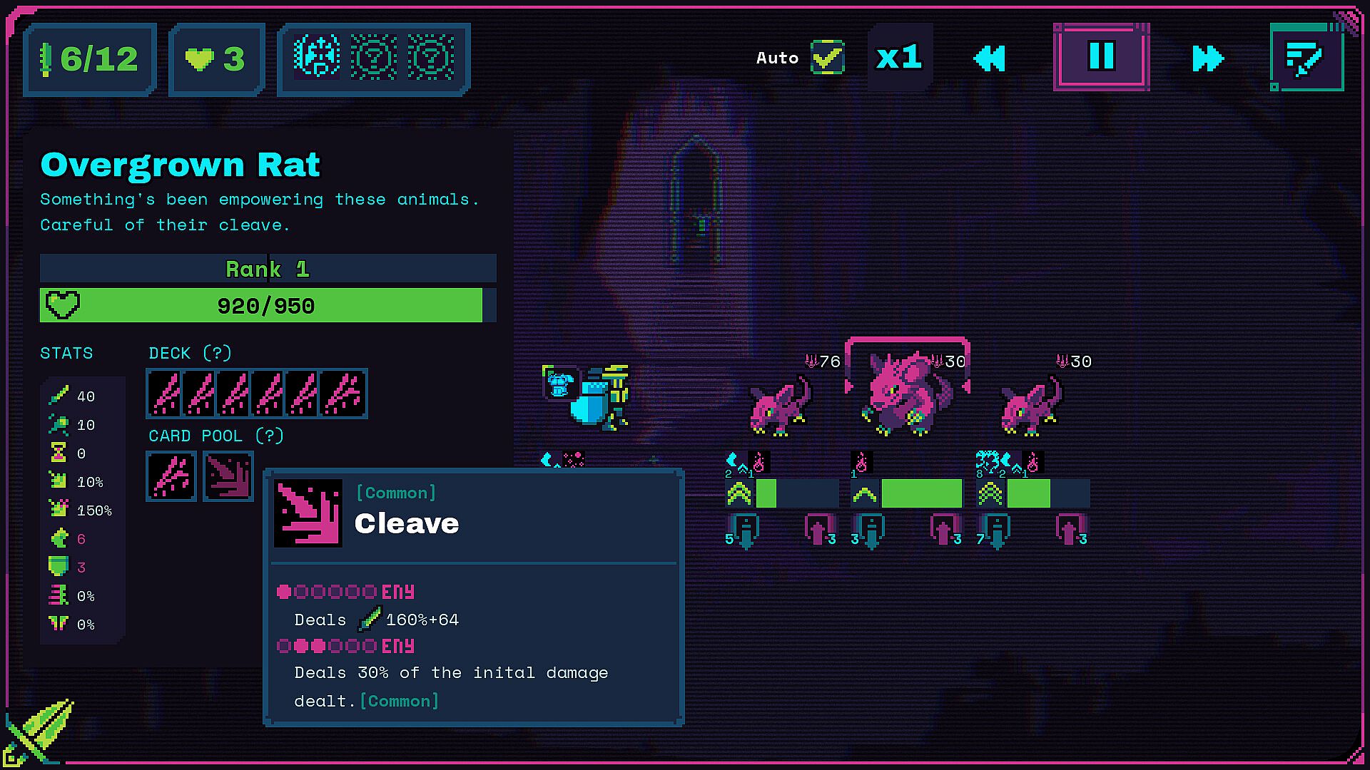 Your party will auto-battle through their own unique deck of cards, which can be added or removed depending on what you buy.