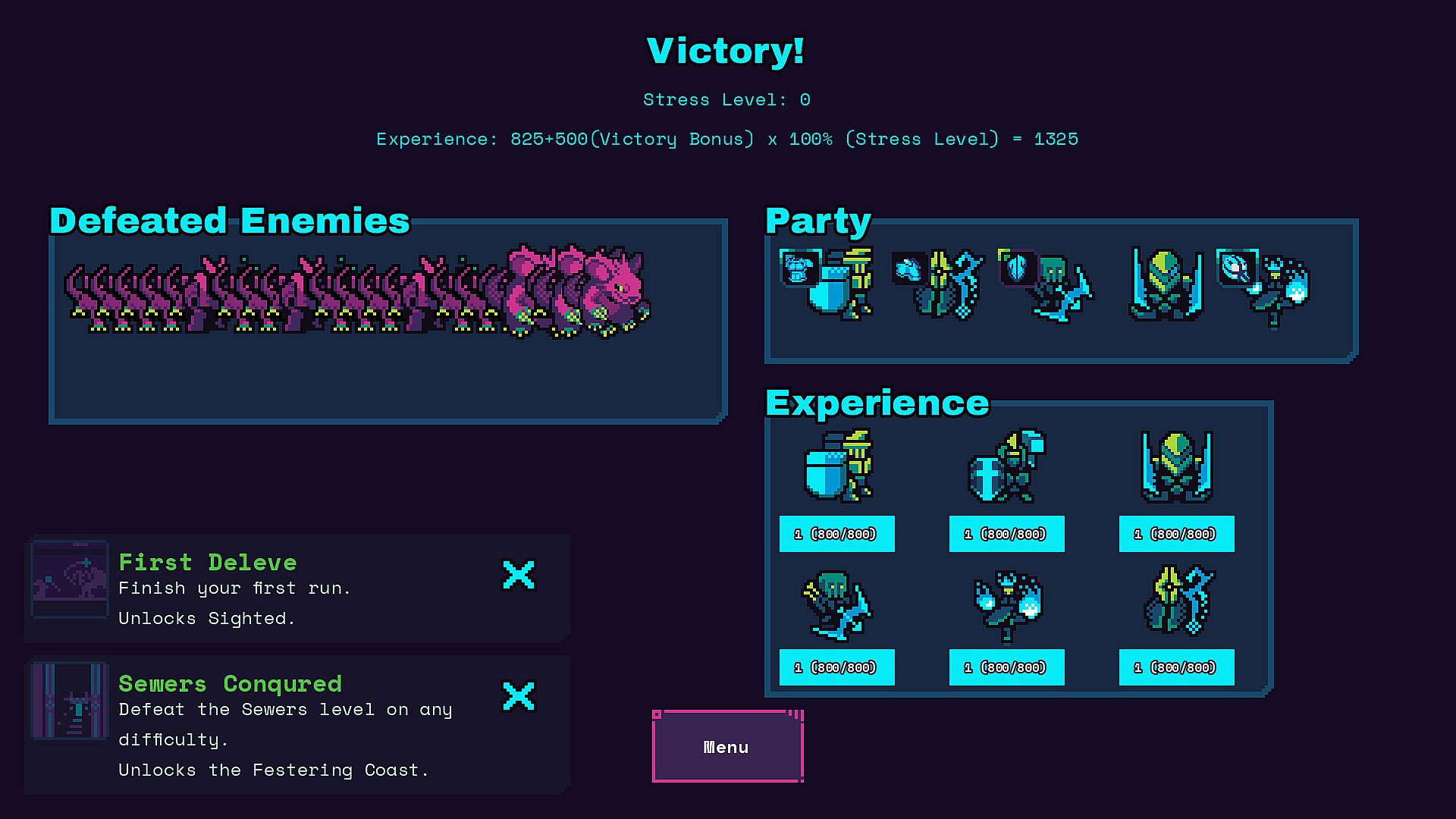Build a party to crawl through waves of enemies in a futuristic fantasy setting with a hint of cosmic horror. Equip items, position, and level up your party in a strategic manner to maximize their power and defeat waves of enemies until you face the final boss!