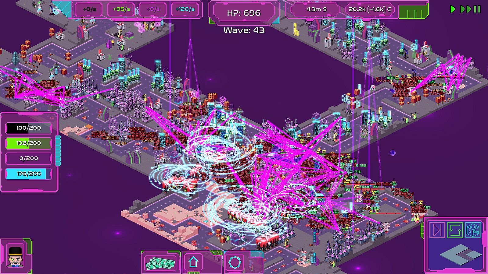 • Use your resources to power advanced towers - unless you would rather sell them for intergalactic credits, which can be used to buy one of the 100+ upgrades to your towers, city or economy.