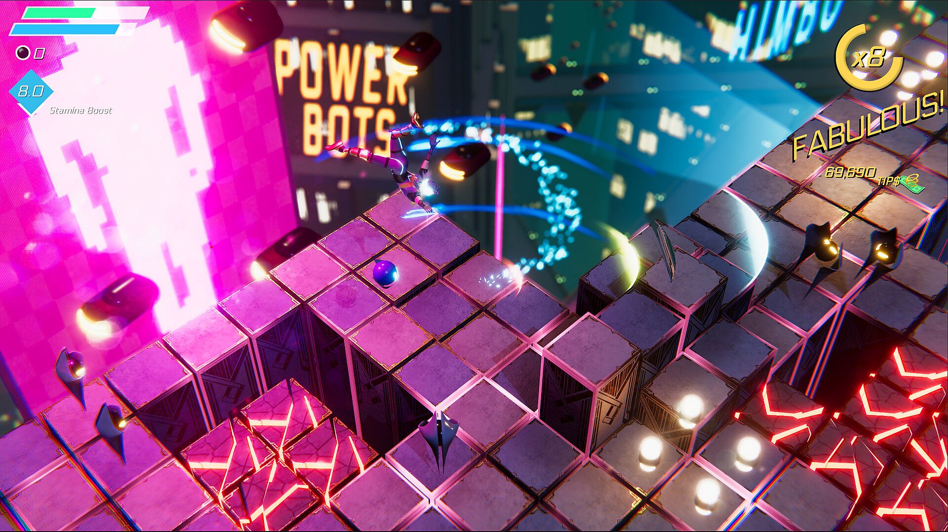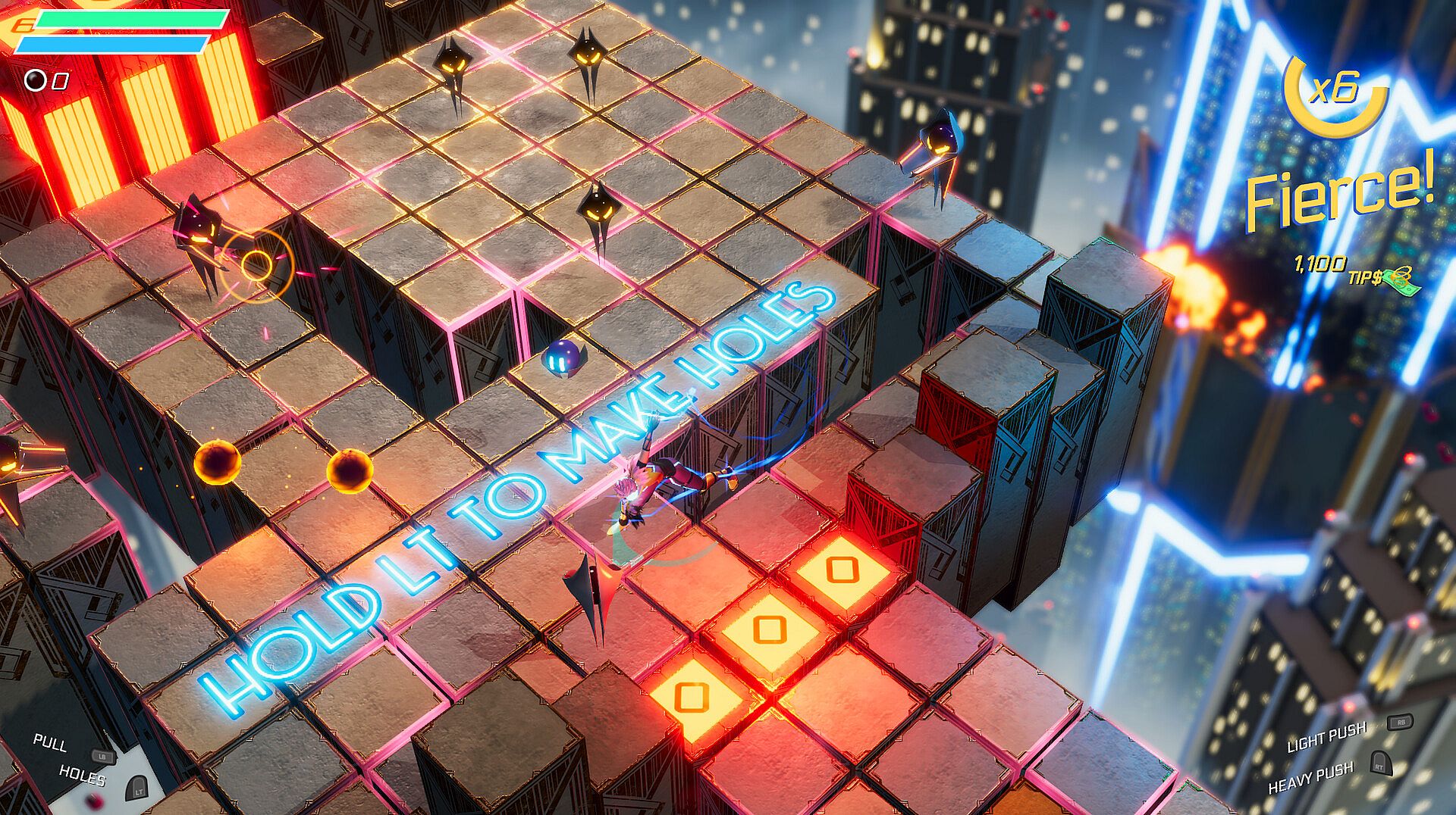 Explore sprawling cityscapes and enjoy neon-tastic vistas