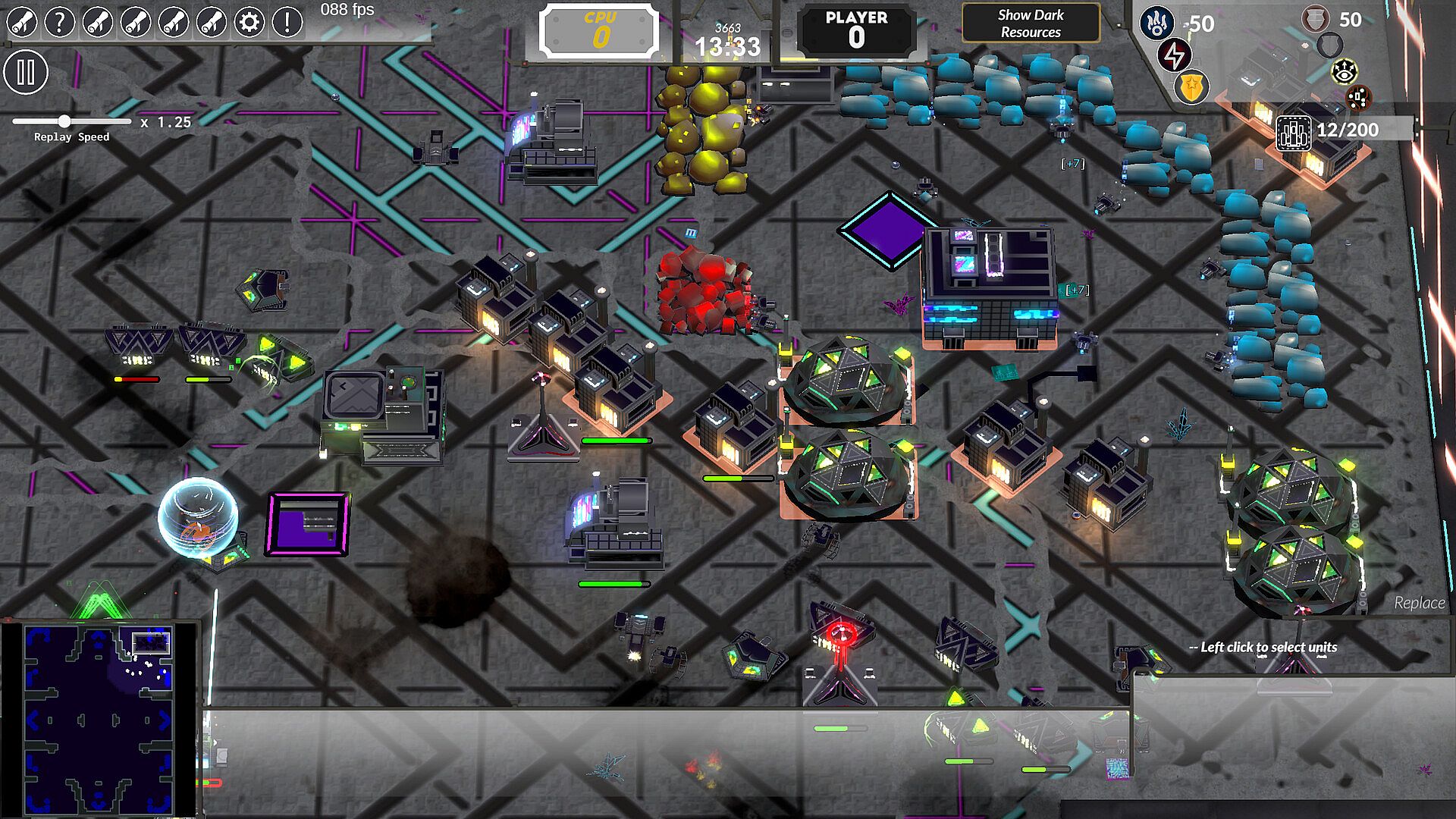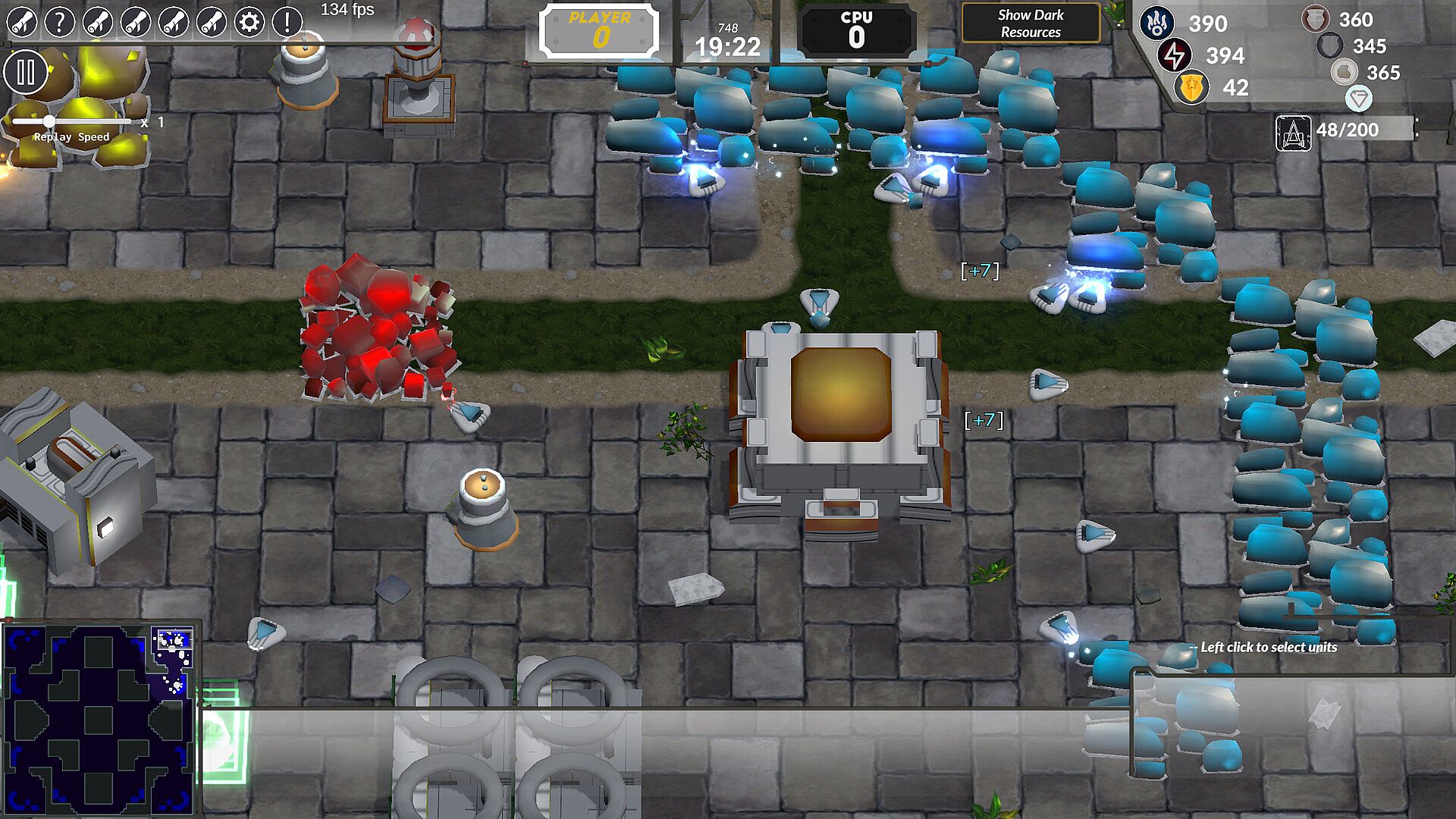 Control hordes of Arena-Bots: Units are produced in batches, typically of size 3 to 5, so you can make big armies. Some Arena-Bots can teleport, some fire skill-shots, others can install computer-viruses on enemy Arena-Bots.