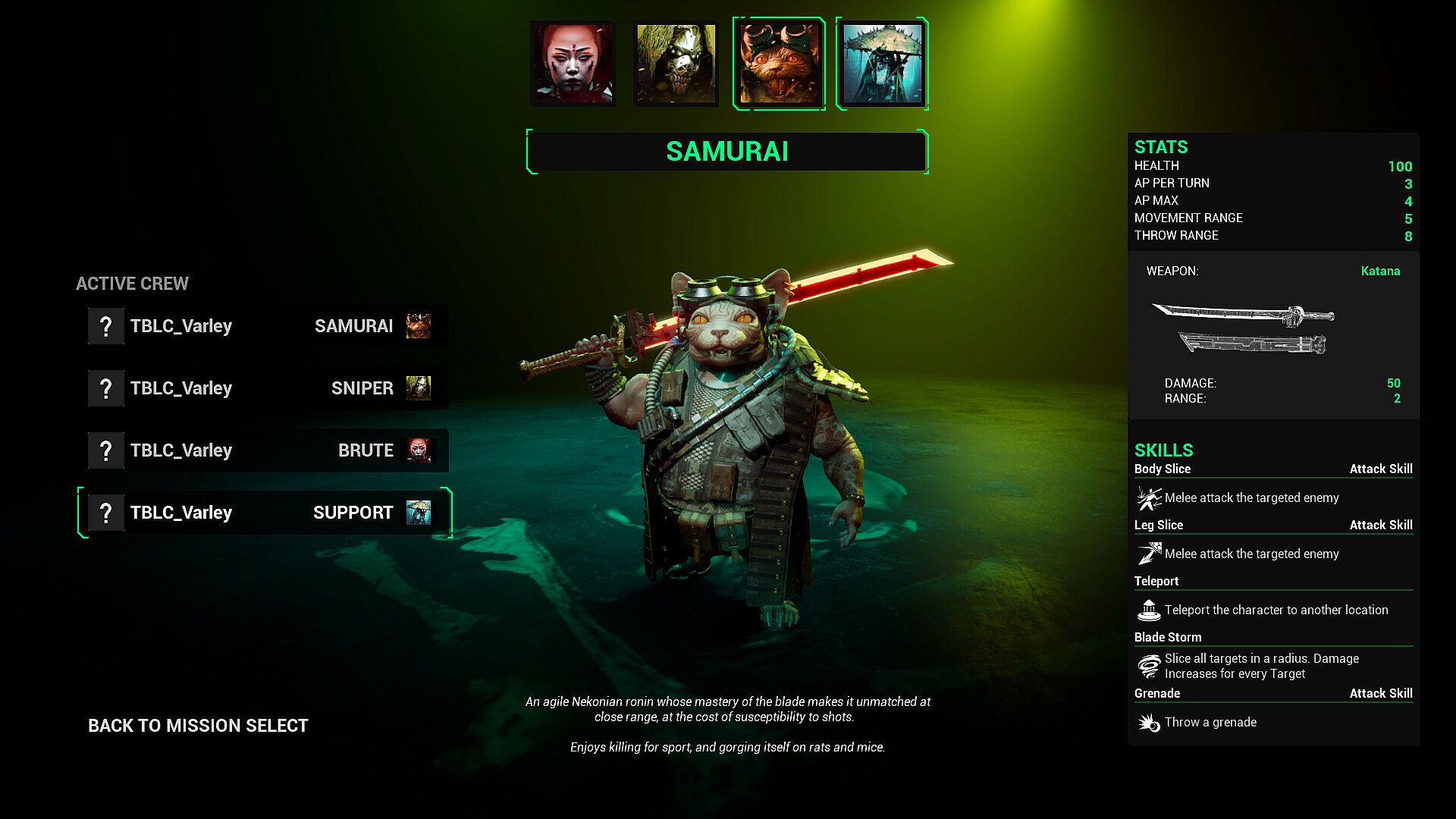 • Brutes with shotguns. Agile sword-cats. Sharpshooters who never miss (unless it's a 99% chance to hit).