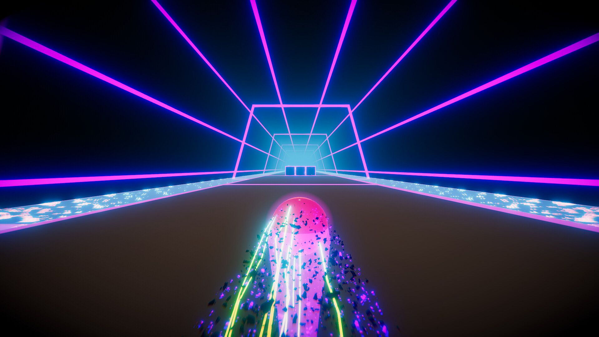 Bright, vibrant neon, Retrowave/Outrun style graphics