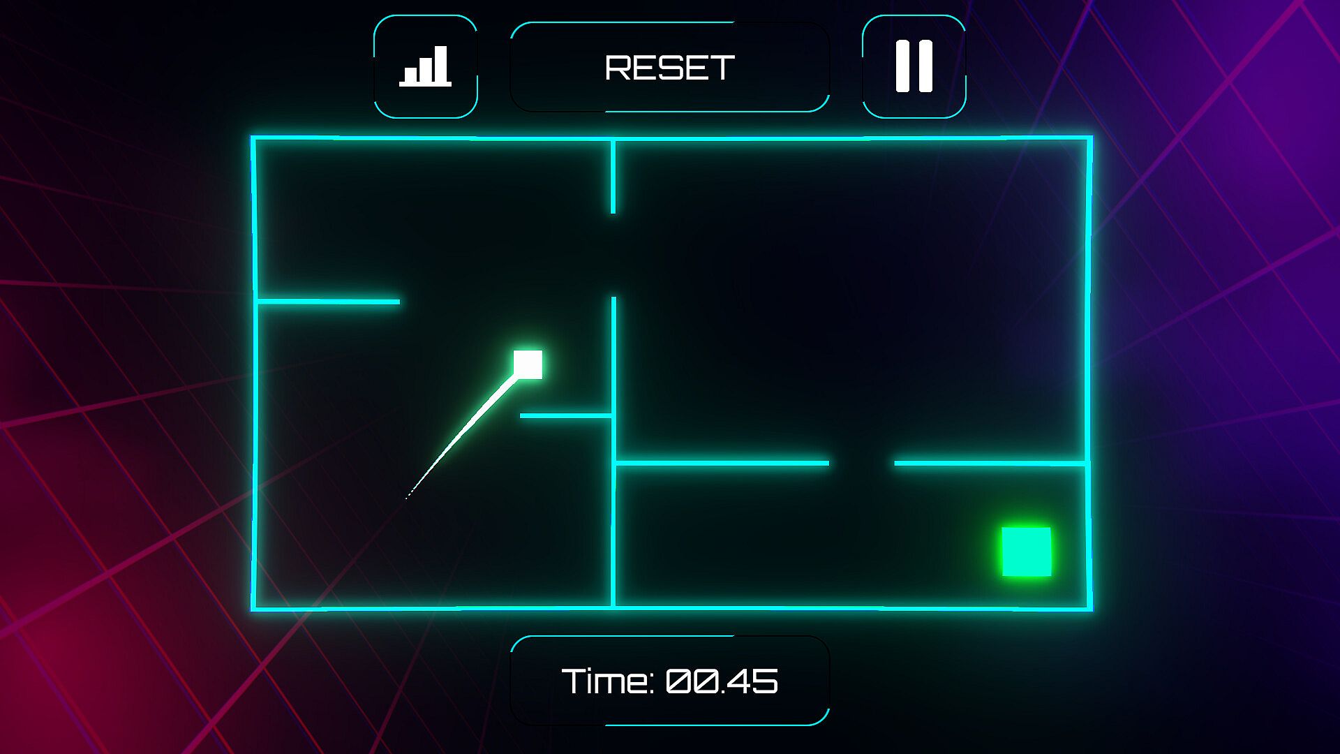 Inside a glowing digital maze, your goal is to pull, aim, and launch a small neon square with precision. Reaching the target may look simple, but every shot and every second matters.
