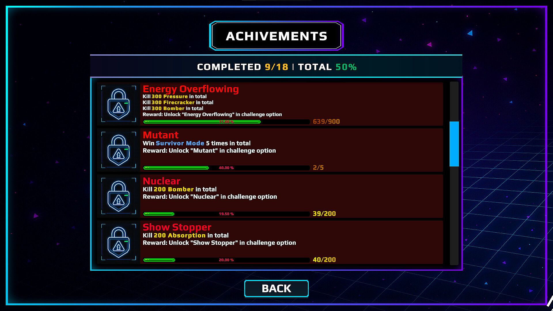 • Neon Geometry Aesthetic – A glowing geometric space battlefield filled with flashy explosions and effects.
