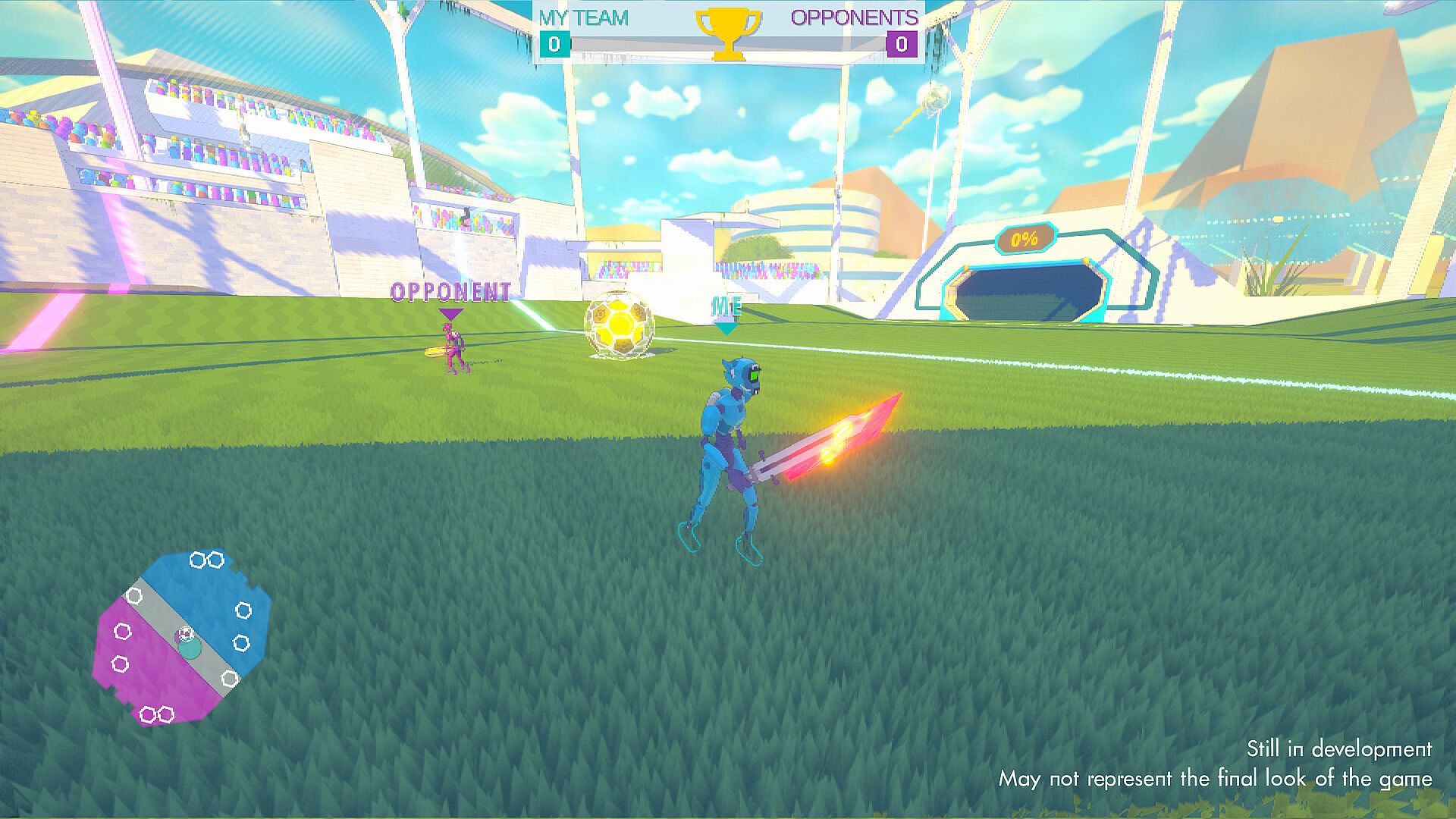 ✦NEOTAG LEAGUE✦ is a physics-based futuristic ball sport game, where two parkour robots teams compete in an arena.