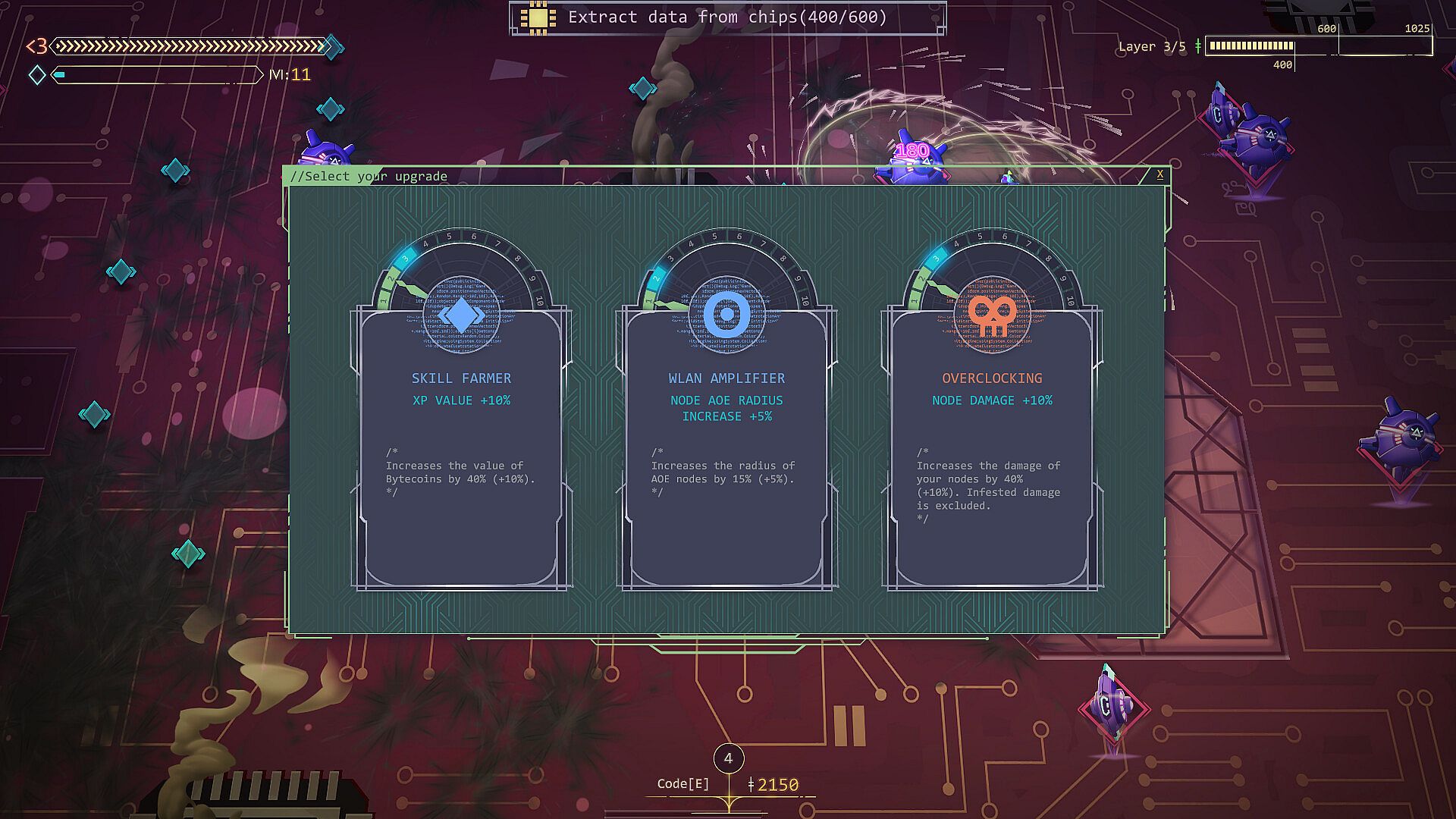 Face relentless waves of security countermeasures in fast-paced bullet-heaven combat. Your custom-coded algorithms execute automatically based on the logic you engineer, unleashing storms of projectiles while you navigate the chaos. Each run pushes your builds to their breaking point.