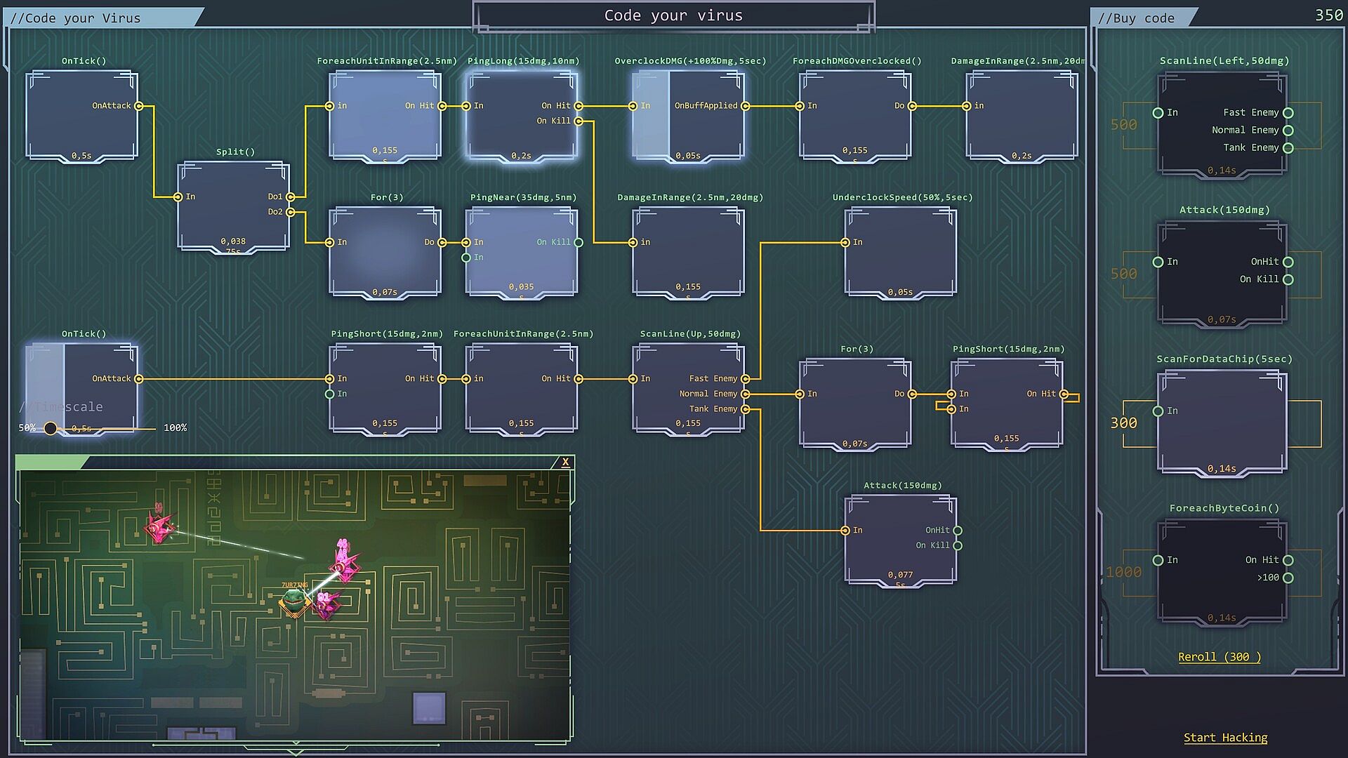 Net.Attack() is a bullet-heaven roguelite where you visually program your own attack algorithms using 150+ drag-and-drop nodes, then watch them execute in real-time combat against security system hordes.