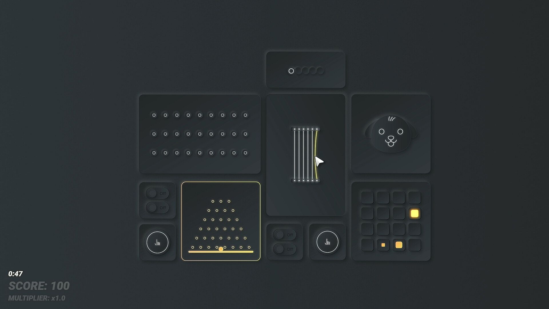 Operate a futuristic control hub filled with switches, sliders, and strange tasks.