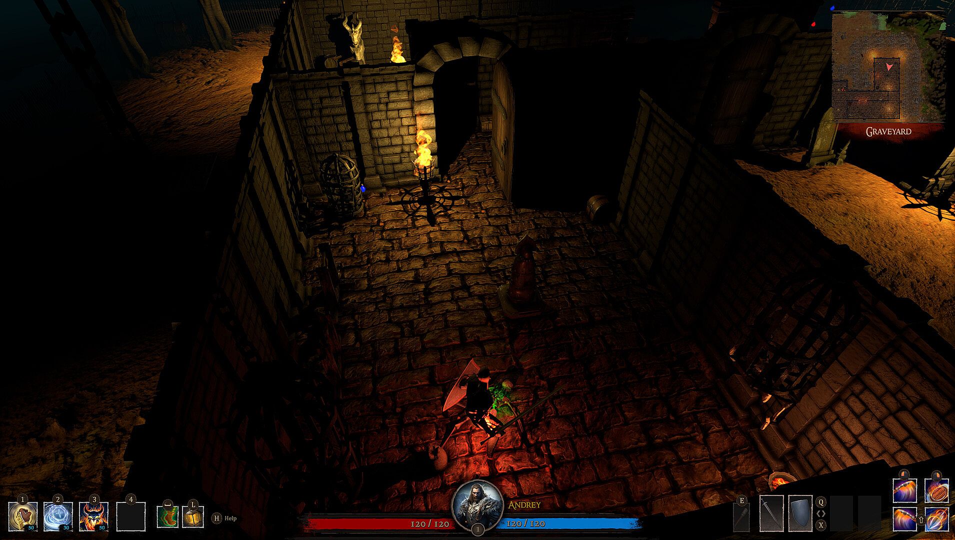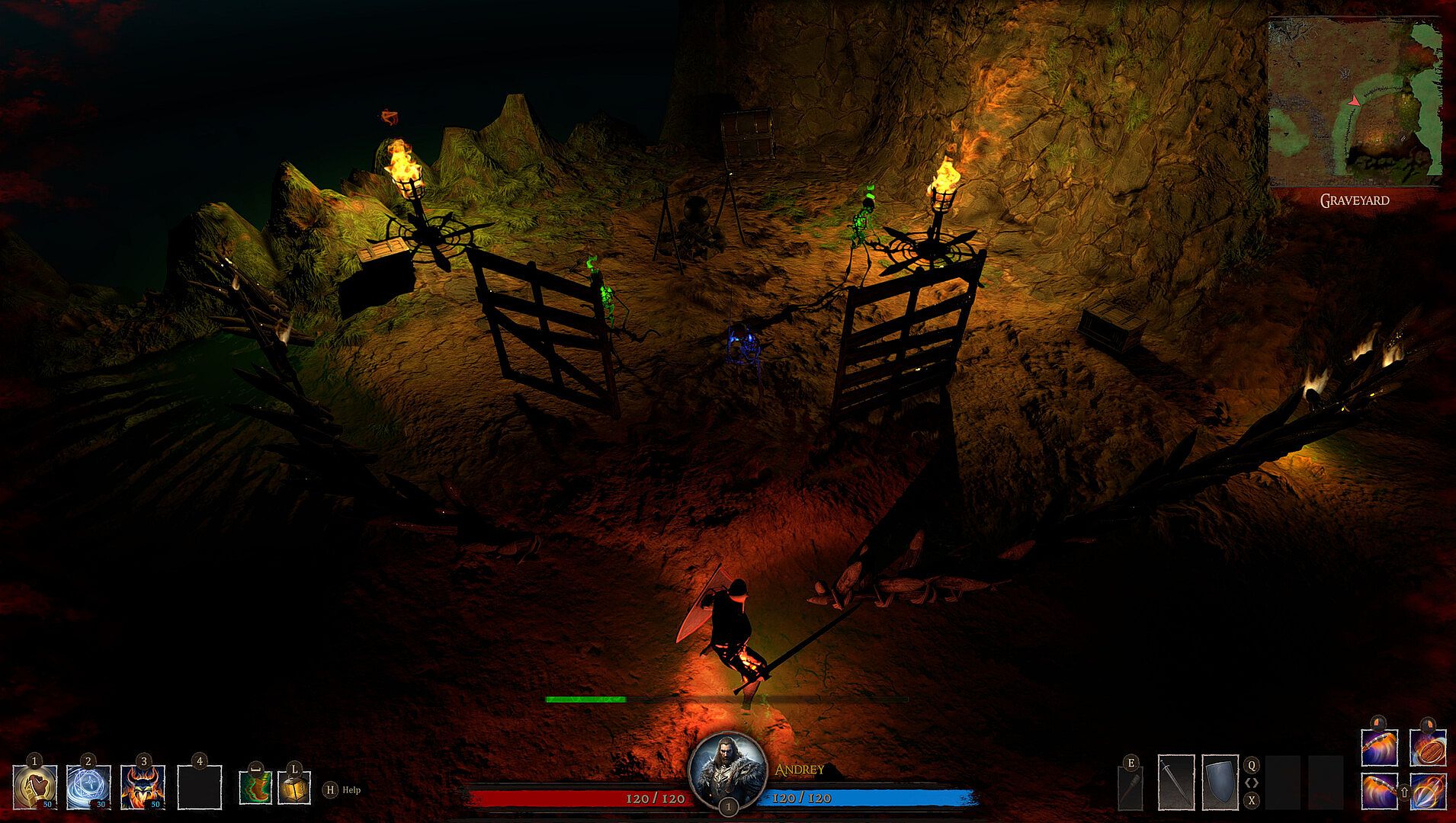 - Navigate a handcrafted map with diverse biomes: burned villages, dark forests, swamps, apocalyptic ruins, and caves