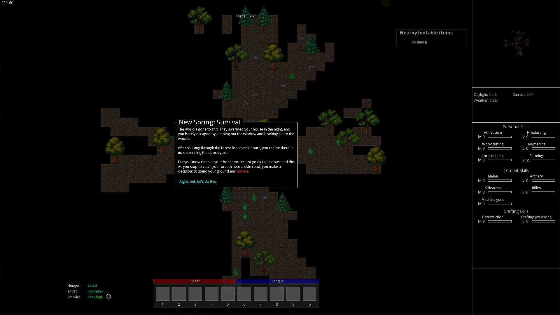 New Spring: Survival is a open world zombie survival and crafting RPG where you are trying to stave off the hordes in a procedurally generated post-apocalypse.