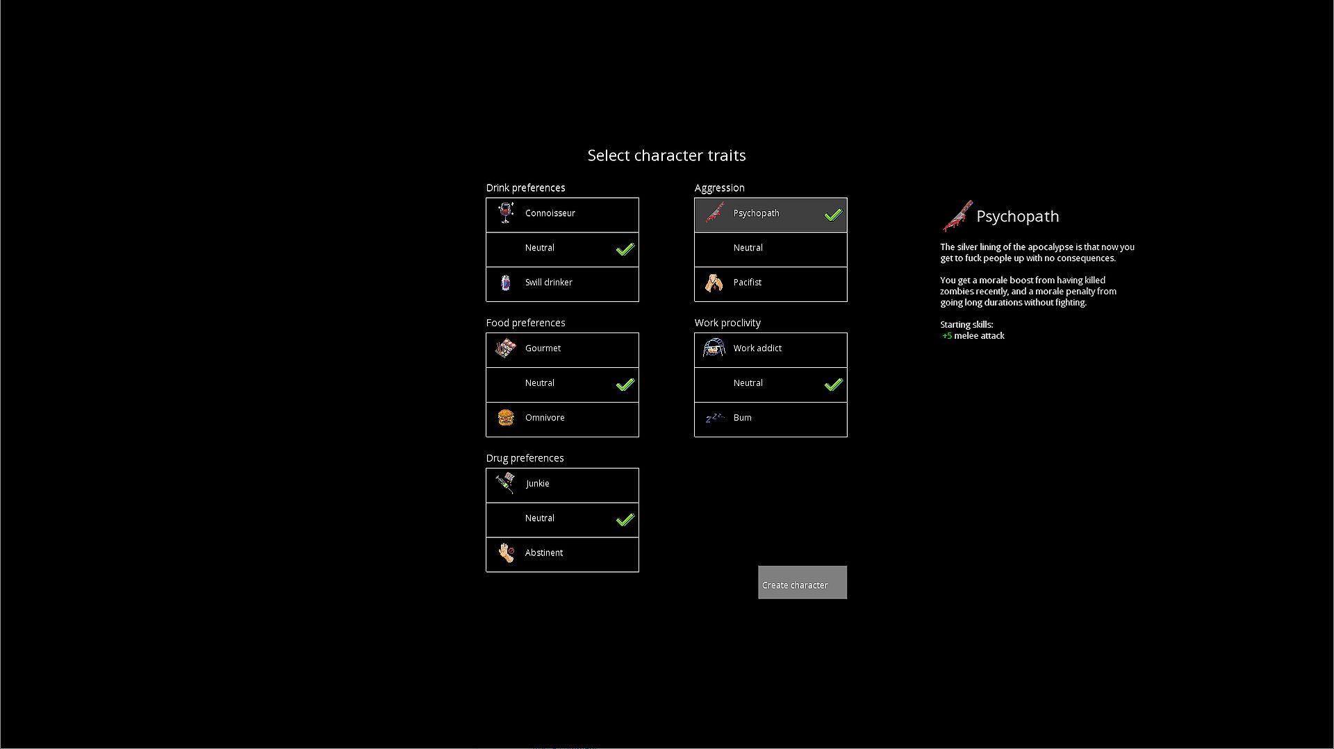 Keep your character's morale in check to gain performance boosts and avoid sinking into post-apoc depression. How you do this is influenced by your character's personality traits.