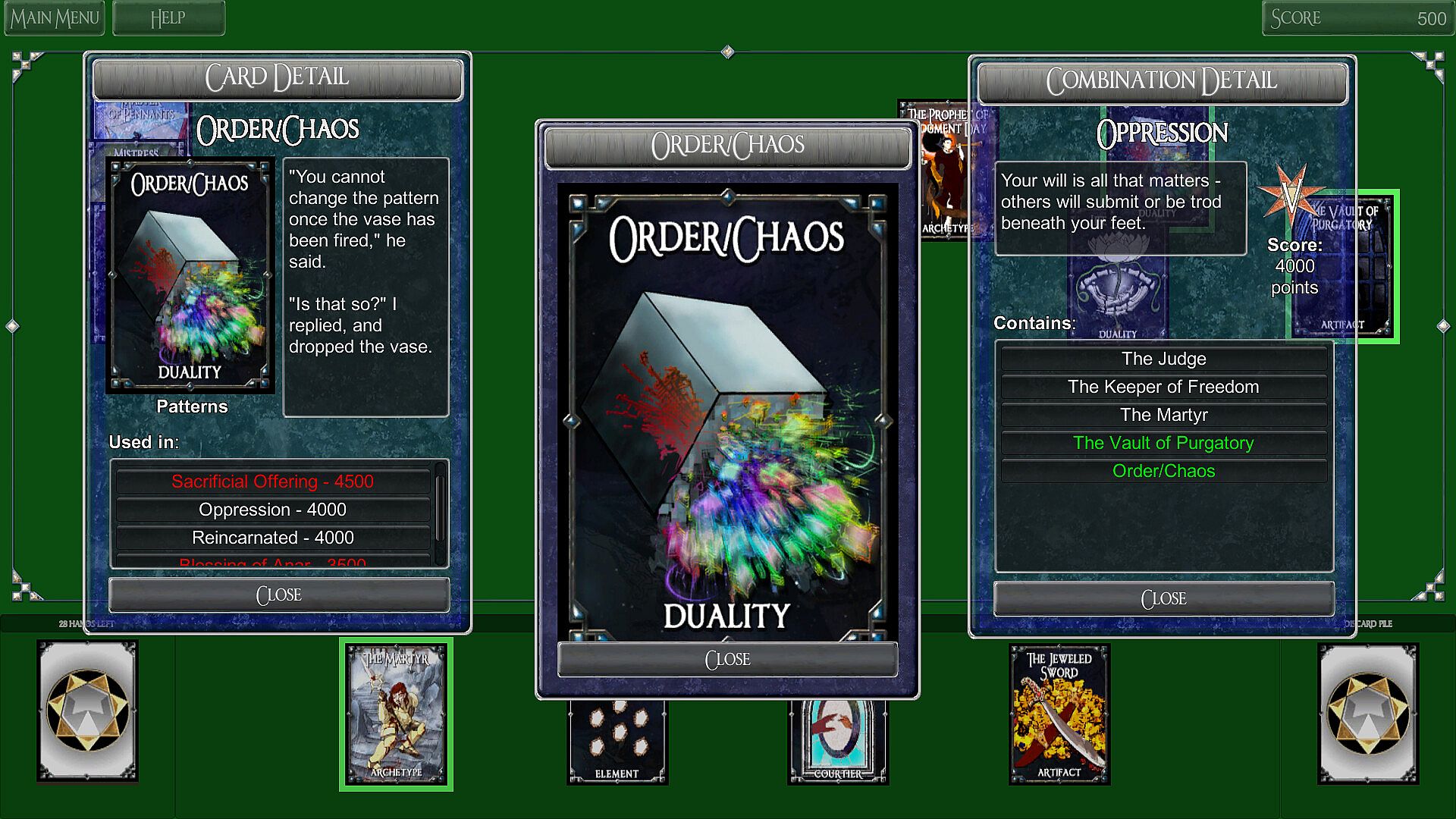 Nexus: The Zoraidian Oracle is a solitaire card game with three distinct purposes - to entertain you, to relax you, and to challenge your strategic and critical thinking skills - based upon whatever your frame of mind desires it to be. Inspired by Hanafuda, a traditional Japanese flower card game, Nexus is a versatile diversion for the mind and the spirit.